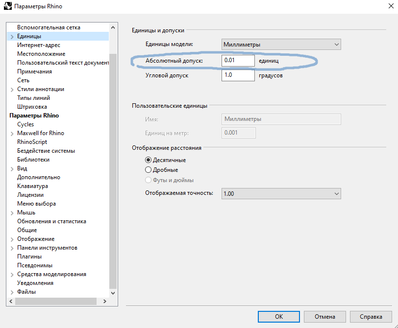 Грубо говоря, вот этот параметр в настройках (на пикрил) сообщает, что точки на расстоянии 0,01 будут считаться как будто они лежат друг на друге. Но я делаю средине предметы, и иногда большие. Для станка этого достаточно, и микроны не считаю.