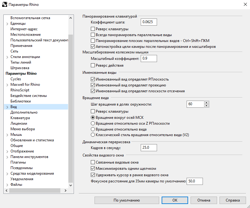 Я уж забыл как там по дефолту. У меня фокус камеры смещается при панорамировании. Я СКМ панорамирую и смещается автоматом точка фокуса. Либо при зуммировании. А если мне не нравится наклон, что зажатый Shift + Alt и CКМ позволяет вращать камеру вокруг оси фокуса, так сказать.