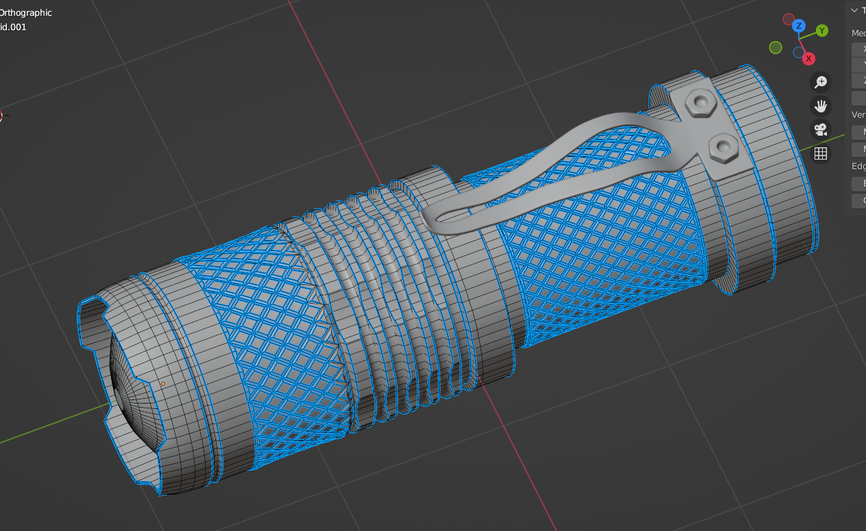 >>296718 Вот эти ребра через ринг селекшн выдели, и в значении бевела 0 поставь На зажиме если так же с лишним бевелом не сделал, просто добавь больше сабдива (я б еще чуть запушапил, чтобы толще был alt+S) Не делай все цельным куском, этот фонарь легко можно разбить на примерно 4-5 частей. Ребристую ручку уж точно следует делать отдельно, тогда ты не будешь привязан к плотности сетки и сможешь увеличить плотность этой ребристости.