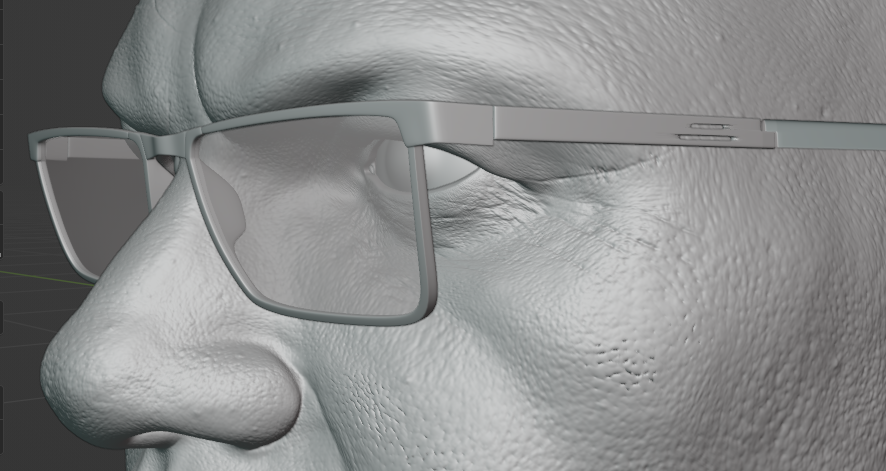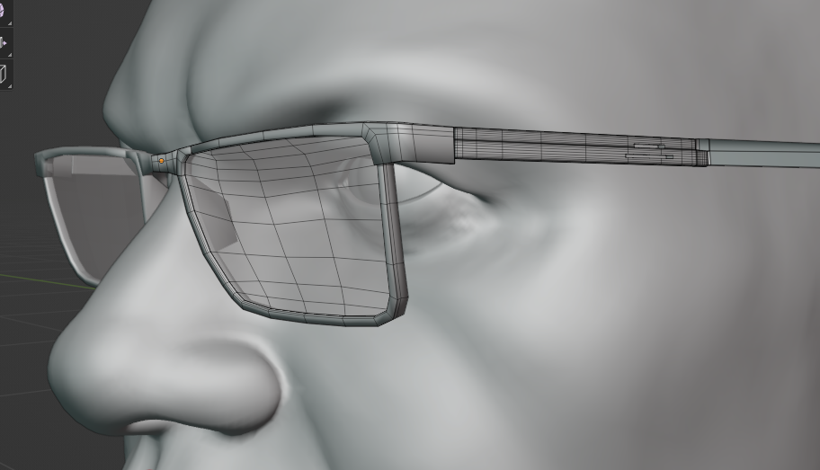 День 33 - доделал мелкие детали лица День 34 - смоделировал анатомически правильные глаза День 35 (сегодня) - смоделировал очки Модель такая себе, делал буленовские дырки на одном из элементов очков и получился пикрил перепад по полигонам. Как это править?