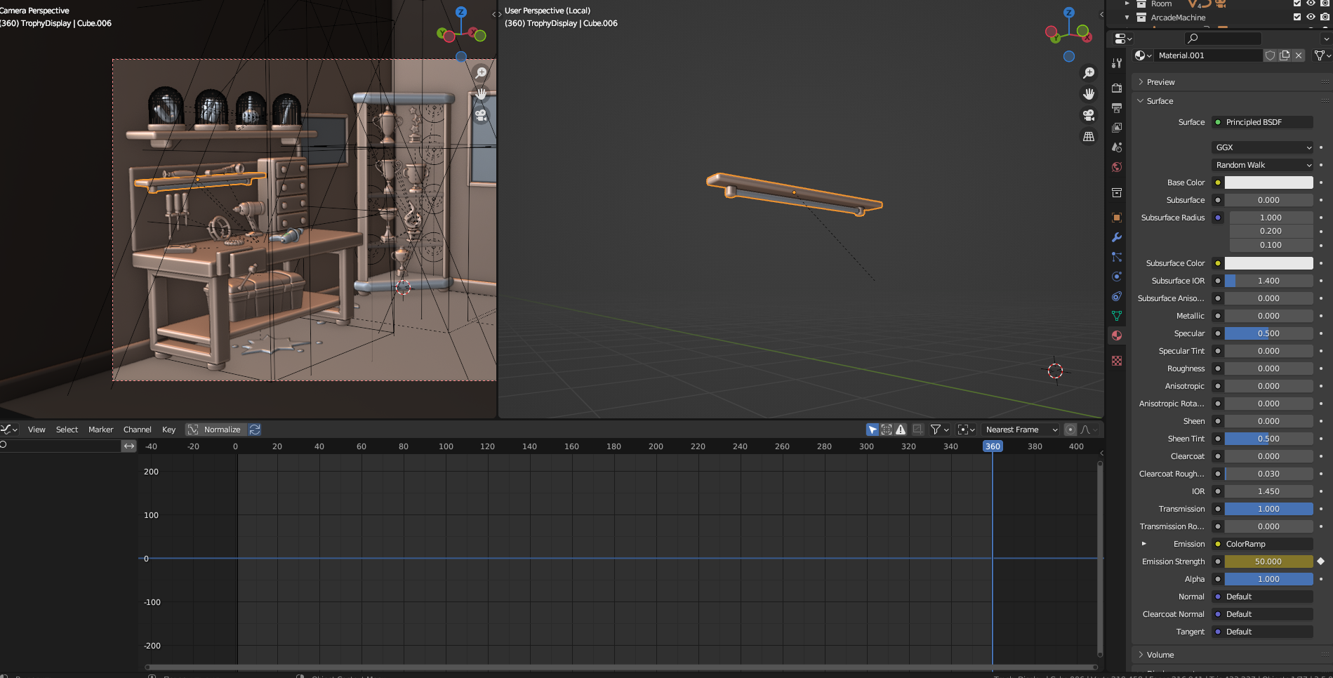 Здравствуйте, дорогие друзья. Не могли бы вы мне помочь с очень простой задачкой. Не часто работаю с анимацией, но тут меня попросили сделать сцену чуть более живой и у меня произошёл конфуз. Есть моделька лампы, хочу в графэдиторе с помощью модификатора нойз сделать так чтобы она мигала, но кривой с нужными кейфреймами нету. Что я делаю не так? Куда нужно смотреть?