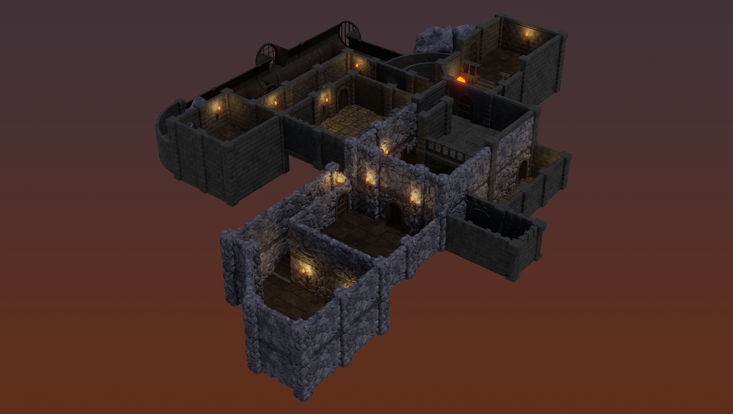 Спасибо. Вот моя предыдущая (по сути моя первая) работа. Делал по курсу с Udemy Dungeon Modular Kitbash (спиратил забесплатно). Но в итоге сделал в два раза больше объектов, чем было в курсе