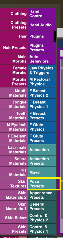 Всем доброго времени суток, подскажите есть ли возможность менять позы персонажей и их местоположение, так же, как в плагине BodyLanguage через "Pose me"? (ну или хотя бы приближенно) Он там реализовал возможность персонажей выставить в позы, поправить все, как требуется, и запомнить, а потом выбирать нужную позу просто щелчком, и ничего не перекашивается, не выворачивается и т.д.