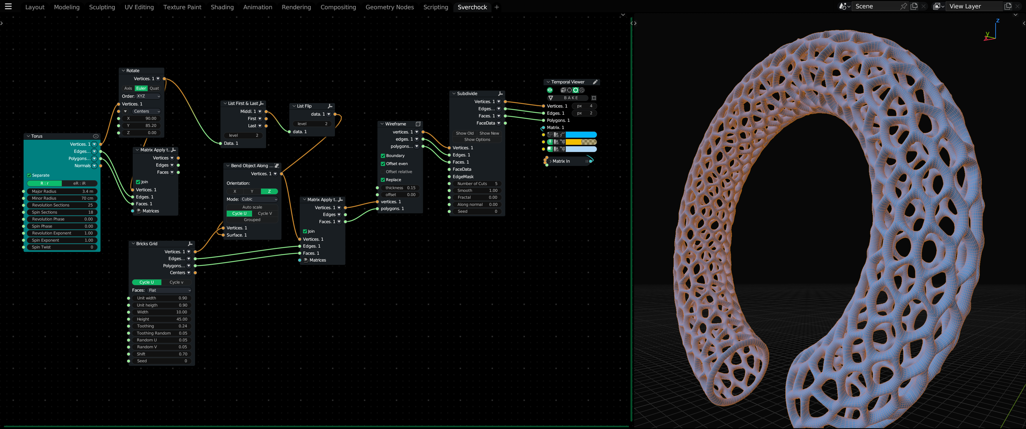 >>325149 Если основные ноды освоил и запаковал многое в нодгруппы, которые потом просто тянешь из ассет браузера, то реально быстро. Базу этой хрени сделал минут за 15, тонко поднастроить, накинуть свет и материалы еще минут 10-15 Без этого пака нодгрупп как без рук, дико советую https://higgsas.gumroad.com/l/wrusot?layout=profile