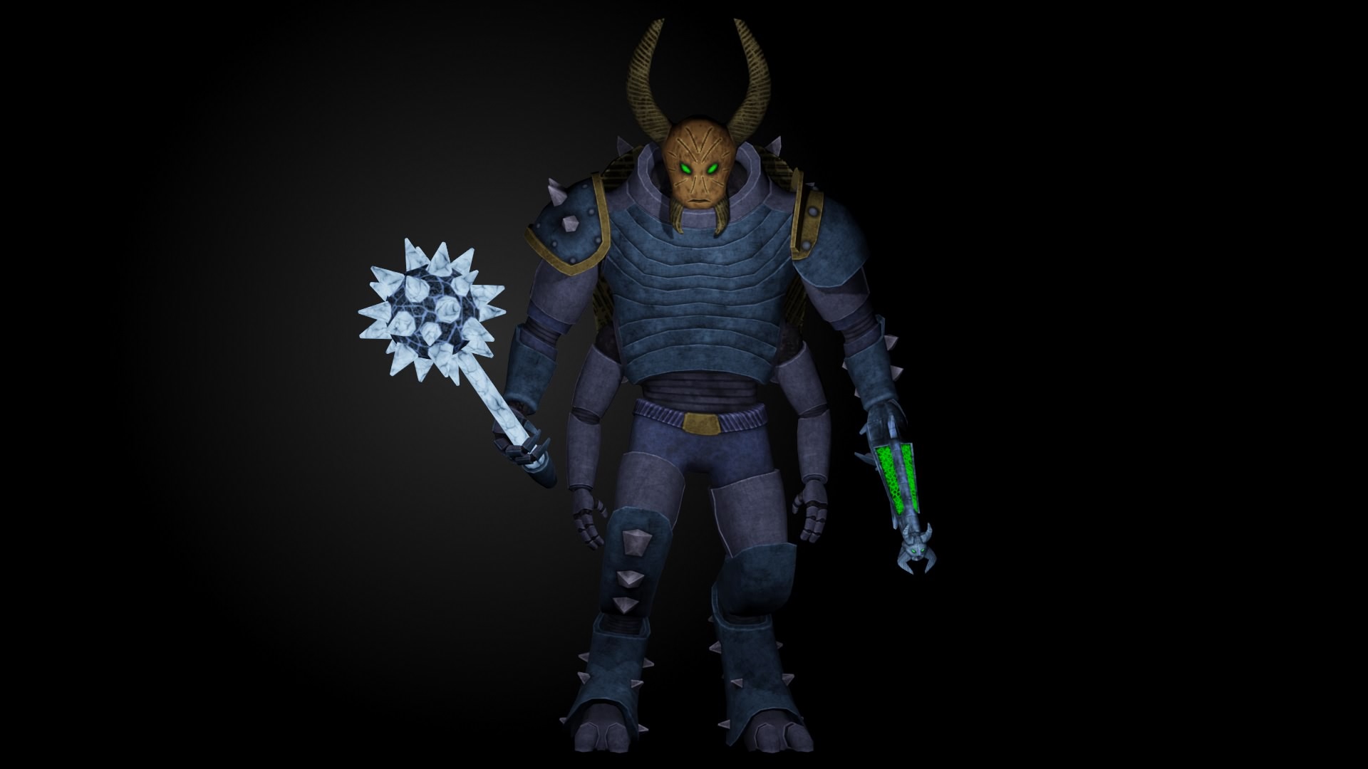 Нож кибер-неандертальца. Рукоять повторяет формы костяного ножа, но из карбона. А вороной нойз был нужен что б имитировать грубую обработку стеклянного лезвия.