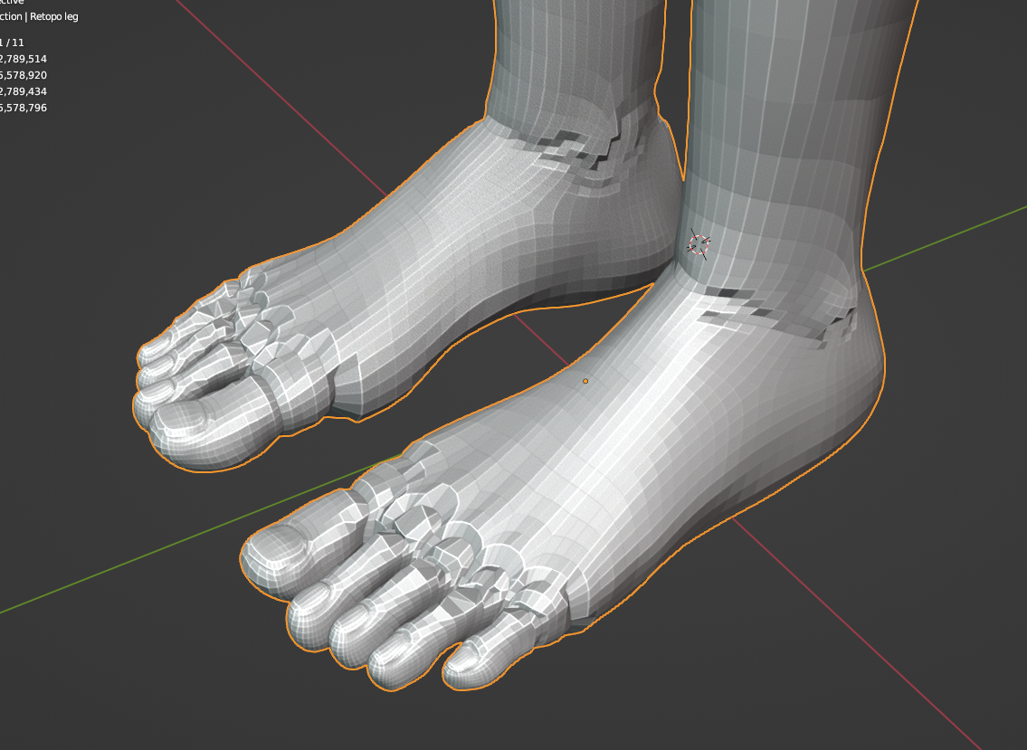 Подскажите плиз. Вот у меня ноги сделаны, пальцы отдельно, стопы отдельно, ноги отдельно. Я сделал ретопологию ног, накладываю шринкврап, а он места стыков этих деталей пидорит. Как сделать, чтобы не было ямок в местах стыков. Мишенью шринкврапа выбираю объединенный через Ctrl+J объект изо всех этих деталек.
