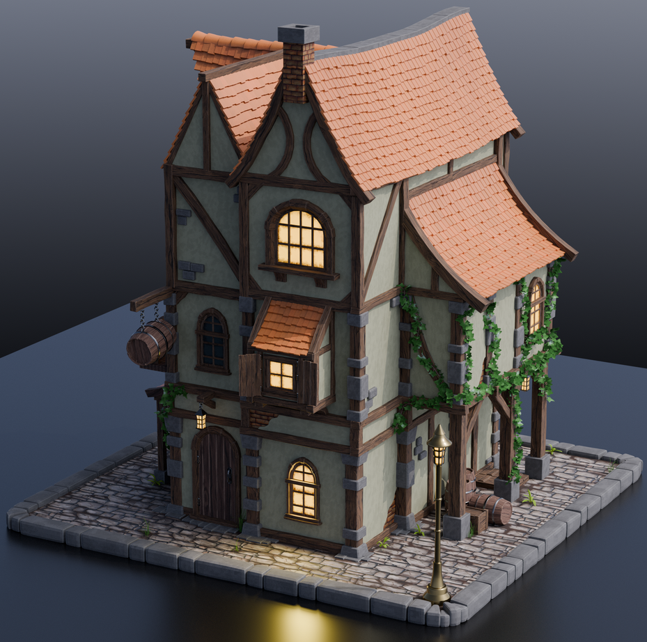 Что мешало тебе сделать там двери, а не окна? Когда я делал курс тоже 3D тюдора (пикрил, который уже год мелькает в этих тредах - мой), я исправлял косяки геометрии на которые автор забивал хуй сам и сделал собственные материалы для древесины нодами, аж две штуки потому что тот, который предлагался в курсе, показался мне дерьмом. До кучи я запилил больше объектов, чем было в курсе. От того же 3D тюдора делал курс по данжеону, там я сделал в принципе в 3 раза больше объектов, чем было в курсе. И это были вроде два моих первых курса вообще, несмотря на это я всё же решил изъебнуться
