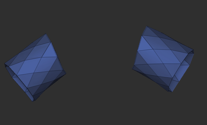 >>335649 Попробовал твой способ, ремешнул немножко, моделлером добавил каждому полигонну по своей полигруппе, дивайднул и маскировал по границам групп. Получилось в целом окей, можно играться с маской и аккуратно вздувать, НО мне нужны не квадратики, а ромбики. Можно как-то адекватно развернуть сетку в зебре или придется засучивать рукава и пердолиться в майе?