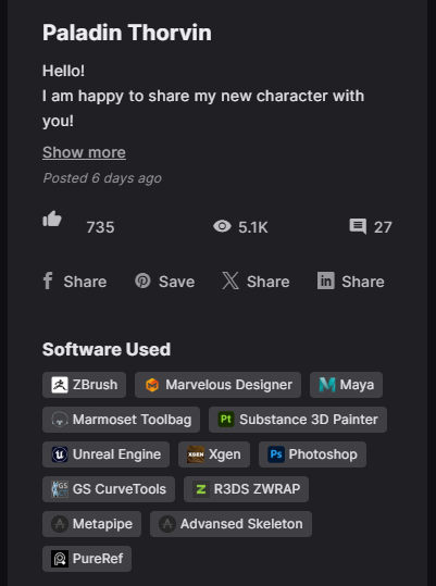 Технически конечно здорово, но в целом всрато, нет души и самого ПЕРСОНАЖА, просто рандомная НПС болванка для какого-нибудь клона Ханта шатдауна. В который раз убеждаюсь, что решают люди, настоящие художники, которые могут передать концепт, настроение, характер. Техничке можно любого васяна надрочить (если он конечно не совсем даун, как некоторые итт ни на кого не намекаю)