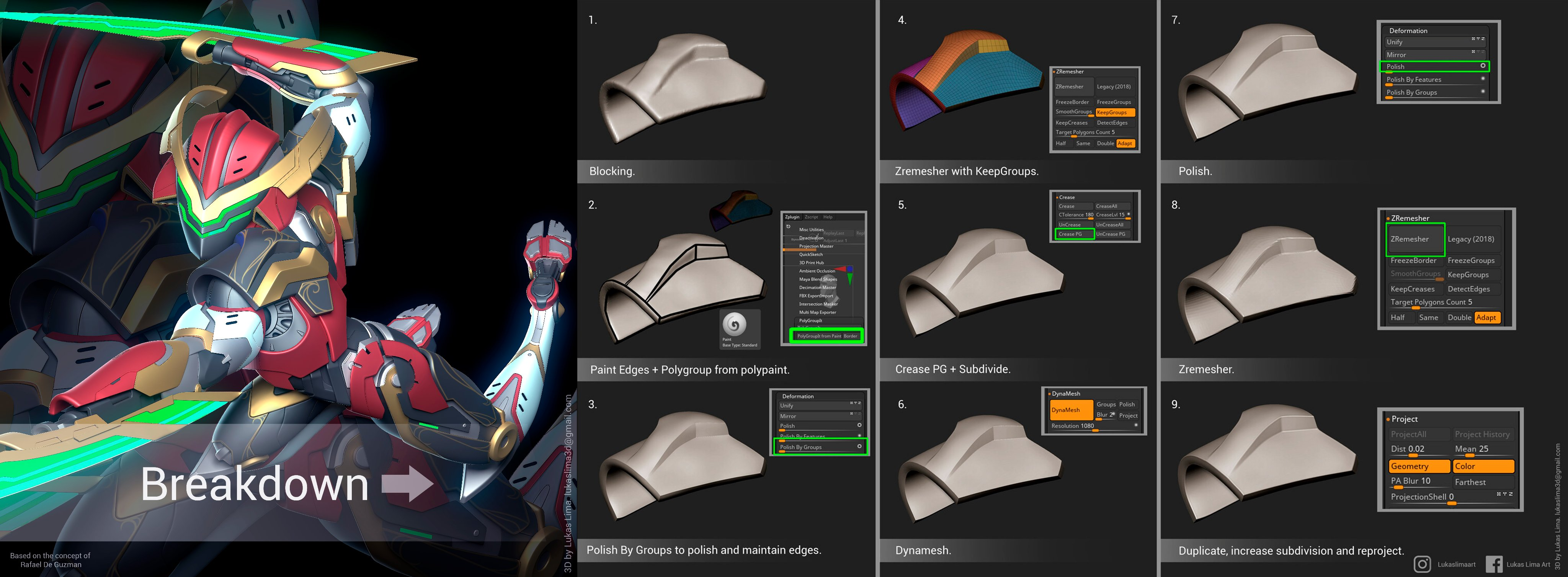 >>343862 >из головы лепить насмотренный дохуя?) Ну пайплайн все равно не меняется. Тебе нужен какой-то концепт, хоть на краю салфетки за 5 мин. Только теперь ты делаешь его себе сам. Концепт нужен чтобы по быстренькому оценить работает ли твой дизайн впринципе. Для этого же делают блокауты в том числе. Чтобы сделать концепт прежде всего кури композицию, ритм, пропорции, первичные/вторичные/третичные формы. Гугли прям эти слова и выйдешь на инфу. Больше инфы конечно на ангельском. Так же необходим рефборд. Даже если ты хочешь слепить восмихуего пиздокрыла, тебе надо найти рефы хуёв, пезд, крыльев, ангелов, птиц, птеродактелей и прочее релевантное + каких-то гоовых артов на эту тему.