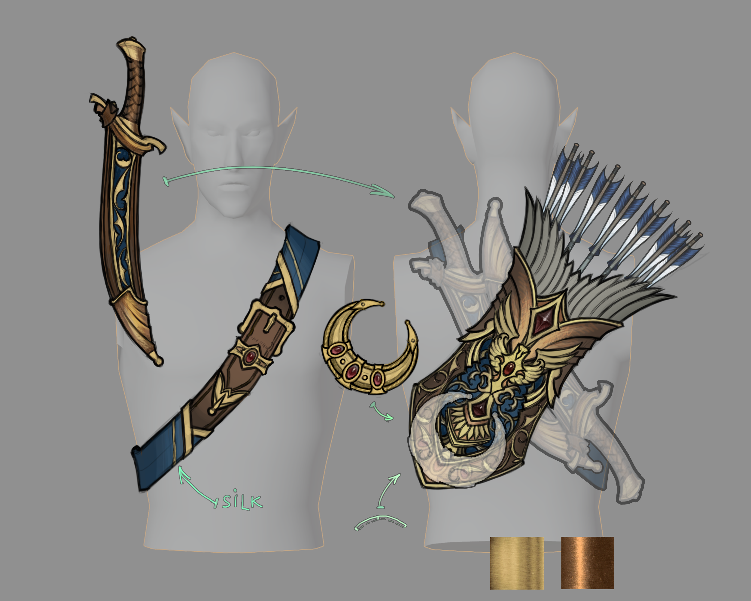 Раз тут у вас праздник переката запощу свой концепт и випку хайпольки колчана который делаю тоже для вахи. Делаю супер медленно и сразу прикидываю как это всё будет запекаться в лоупольку. Бюджет по трисам как обычно нище некукуда.