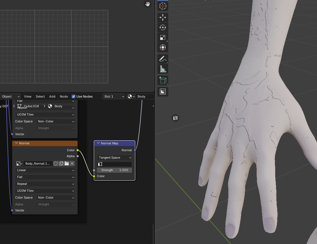 >>346418 Это стандартная назначалка вызываемая путём сочетания клавиш ctrl + shift + T, всё что я менял это просто проставил udim tiles вместо сингл имаж каждому. Уже похуй, просто повторил с гайда под уринуэнжин с инвертированиями каналов под opengl и прочее говно, все заробило, возможно я еблан и на самом деле вены были и так видны (в последствии подправил, т.к. совсем не видать, но похуй уже, с уриной текстурки компактнее).
