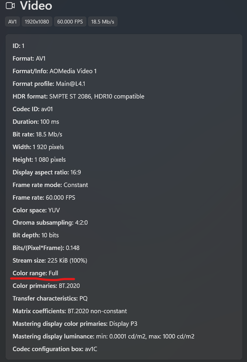 >>348301 >а видеоформат твой поддерживает HDR-то? Да. У меня есть догадка, мол из за "фулл колор ренжа", но где эту настройку поменять я хезе.... если блять из коробки не могут отстроить нормально все дали бы блин настройку/ноду пользователям для траспорта характеристик...