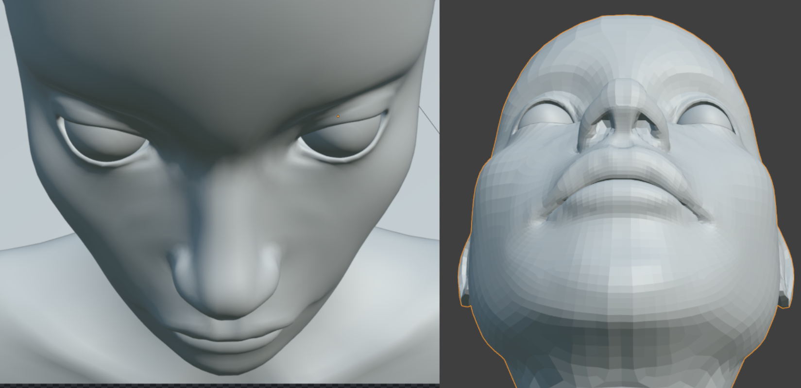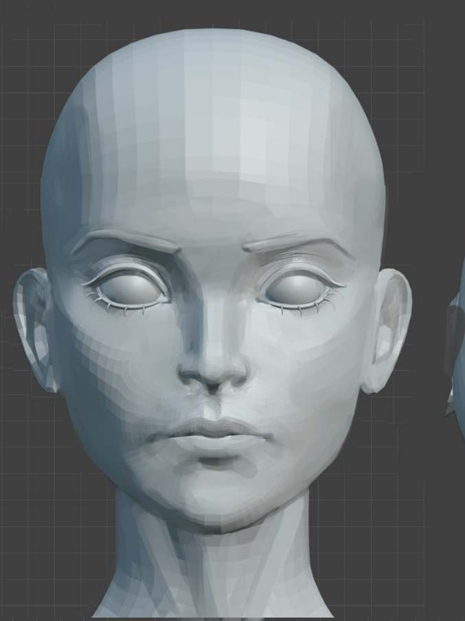 У рефа губы ещё толще, и подбородок выше к губам, а так же другая форма носапырки прям такая еврейская картошка нехуйственная, ещё реф сбоку полноценного не нашел, но под углами +- тоже самое. Мб потом как нить допилю придерживаясь к рефу сильнее и ещё многие моменты вроде ямочек на краях губ и складки вокруг лица не проработаны в виду полигонажа, но эт пох, на текстуринге домалюю