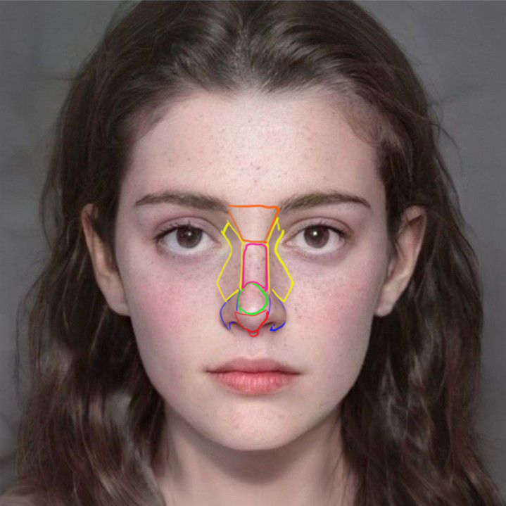 >>348349 Носопыра состоит из нескольких плоскостей, у тебя их понимание западает. Крылья могут быть опущены, но проблема не в этом, а в том что кроме них неправильно нос сделан. Крылья не будут какие толстенные и широченные и будет нижняя плоскость носа, которую я пометил красным цветом. Боковые плоскости (жёлтый) тоже не показал. Сейчас на свиной пятак больше похоже.