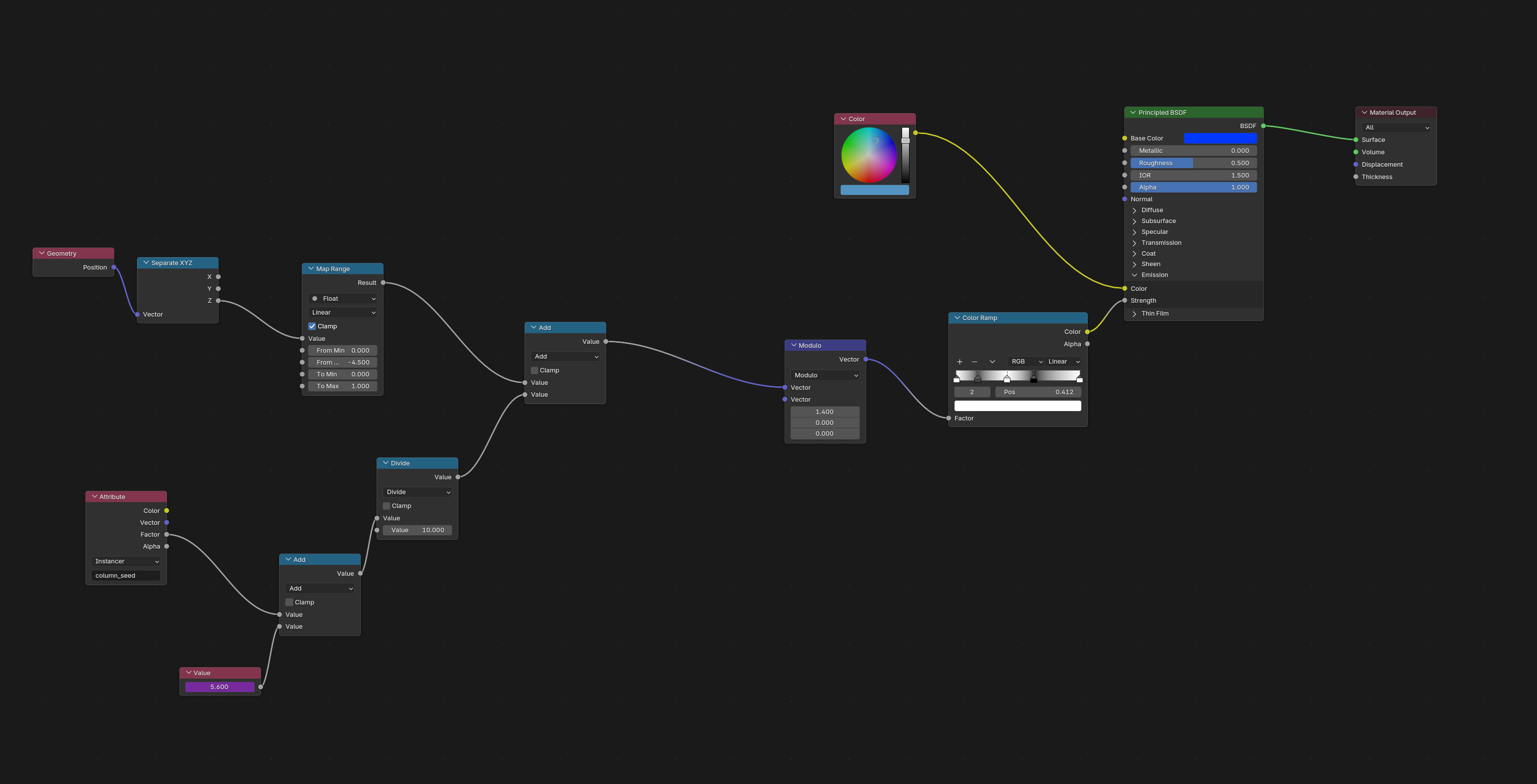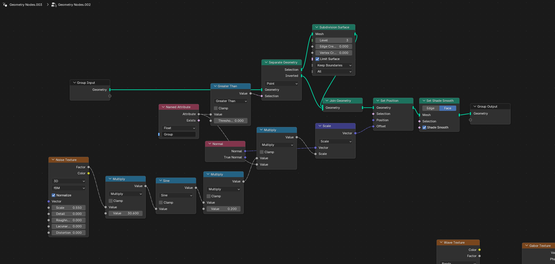 >>346742 → Чуть доработал эти ноды. Они работают только с сабдивом 6, а с ним файлы весят безумно много. Поэтому на входе лучше разделить геометрию, накинуть сабдив только куда надо и объединить обратно. Может кому пригодится. >>348385 Я там нормали в ротейшн сунул, а не в вектор. Но хуй с ним, все равно криво получается, для моей задачи не подходит. Решил проблему гениально - заменил каплю на шар.