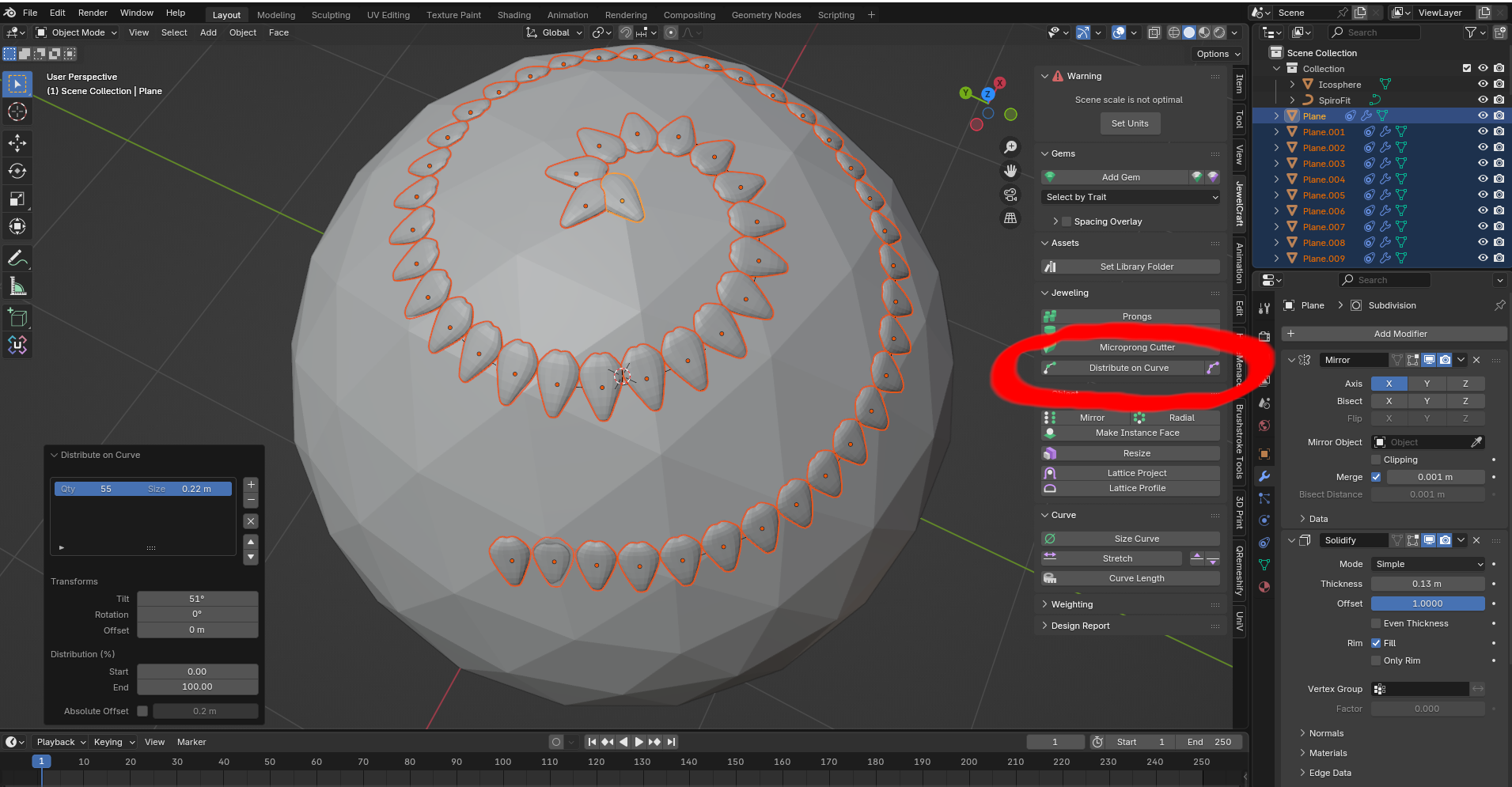 А как сделать аррэй по мешу? То есть опоясать грубо говоря. Я взял плейн, выбулил из него меш вокруг которого нужно сделать аррэй, полученную дырку преобразовал в кривую, по ней аррэй, подкрутил децимейт чтобы удобнее было работать и сижу кручу тилт, чтобы все прилягало более-менее как надо. Легитимный способ? Или хуйня костыльная?