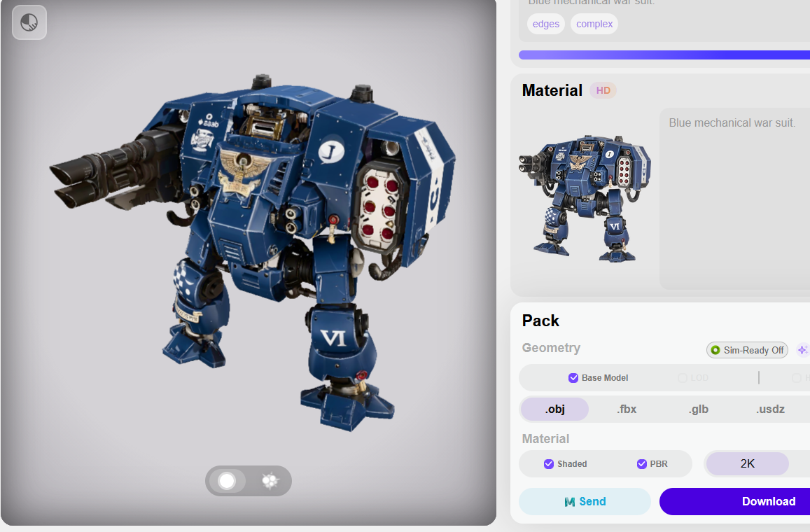>>348413 https://hyper3d.ai/ https://www.hitem3d.ai/ Не то что недорого, а литерали бесплатно если аккаунты менять. Конечно слишком сложные картинки не осиливает, но отдельные объекты и персонажей вполне.