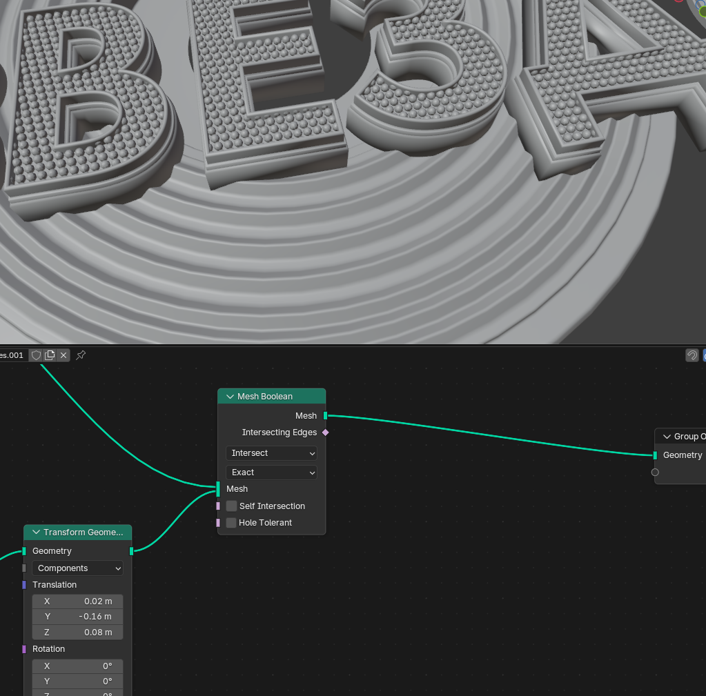 >>348388 Хотя не, хуйня, не объединяется геометрия нормально, остаются дырки, получается не манифолд и потом все эти впуклости просто заливаются. Но кольцо на 350 мб это перебор. Что еще можно подшаманить? Если геометрию по фейсам делить, а не по точка, то работает получше, но все равно дыряво