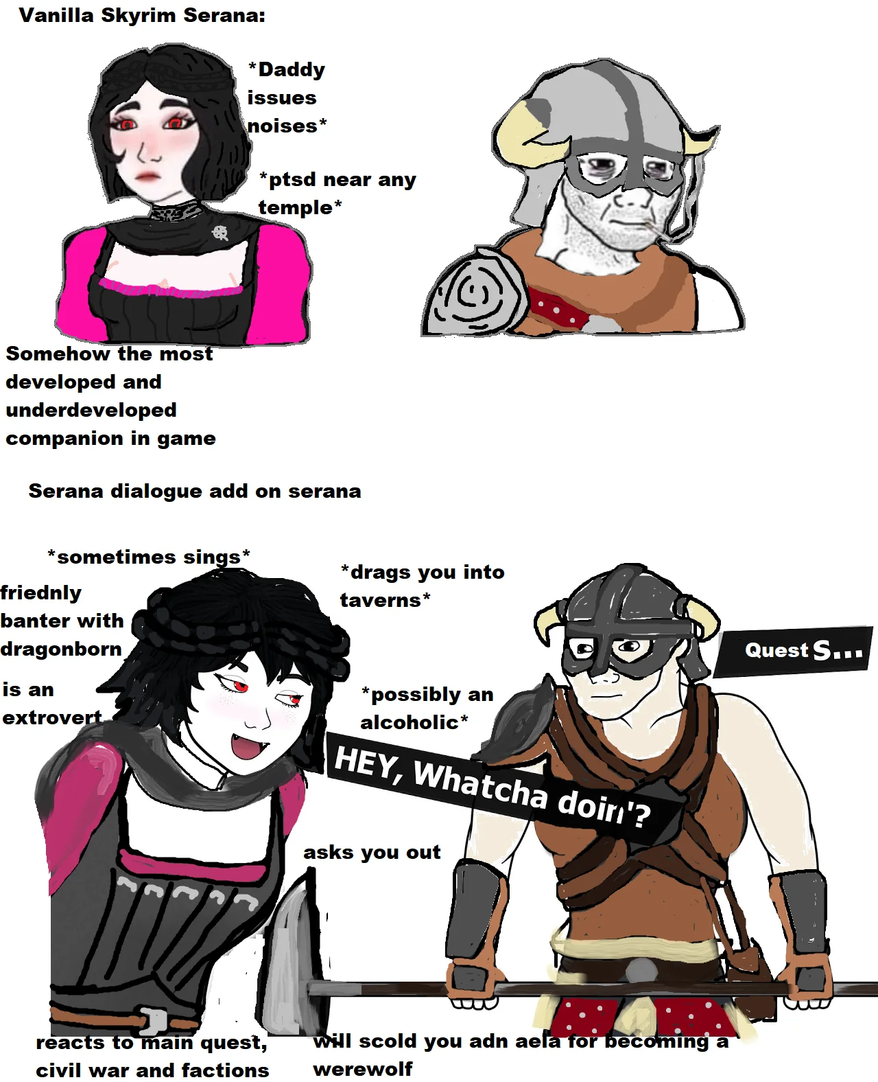 >>1979023 7>>1979023 Cerf, буквально можно и да, эта культистка намиры пойдёт под венец в храм мары. Но це как раз кринж, с Сераной все в целом по уму, но можно было добавить романс вне брака аля калаут 4. Но видимо лень было заёбываться с отдельной механикой, хотя к слову остатки каких-то мыслей на этот счёт есть в файлах игры