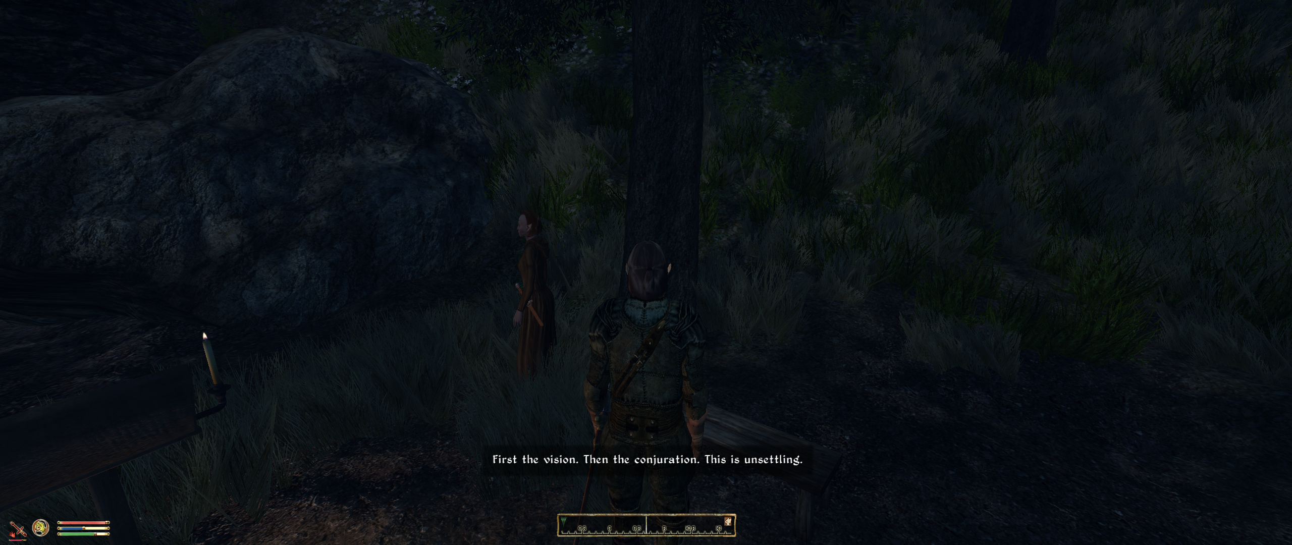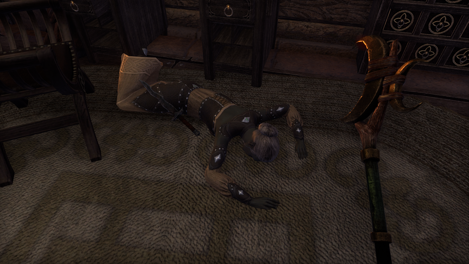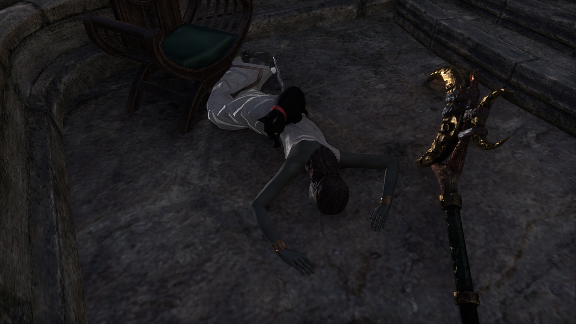 Зато СХ очень порадовал внезапной концовкой, когда появляется Ворин Дагот и говорит «Неревар малаца, горжусь тобой». Тронуло. Потом возвращался домой, почивал на лаврах, но словил некислое птср из-за смерти отряда. Встретился с верхушкой дома Редоран, принял почести и похвалу, написал письмо Гравиусу ну точнее слетал по-быстрому, чтобы узнать как там положняк изменился после смерти Дагот Ура, ну или их там имперцы уже добили. Поговорил с Вивеком, у него там тоже пара новых прикольных диалогов - в частности он спойлерит, что данмеры вернутся к поклонению даэдра, потому что смертным нужно во что-то верить, и он это одобряет (а еще до этого лично породнил Отступников с Храмом, как бы предвещая эти события). Мир внутри игры меняется - пришла новость, что в доме Редоран наконец выбрали нового маршала Защитников Веры на замену Болвану Вениму, вменяемого мужика из альд’рунского храма. А я уже хотел костыльно туда какого-нибудь своего балбеса поставить, чтобы свято место пусто не было. В качестве клифхэнгера приехал к себе в поместье, лег отдохнуть и проснулся ночью от «громкого шума».