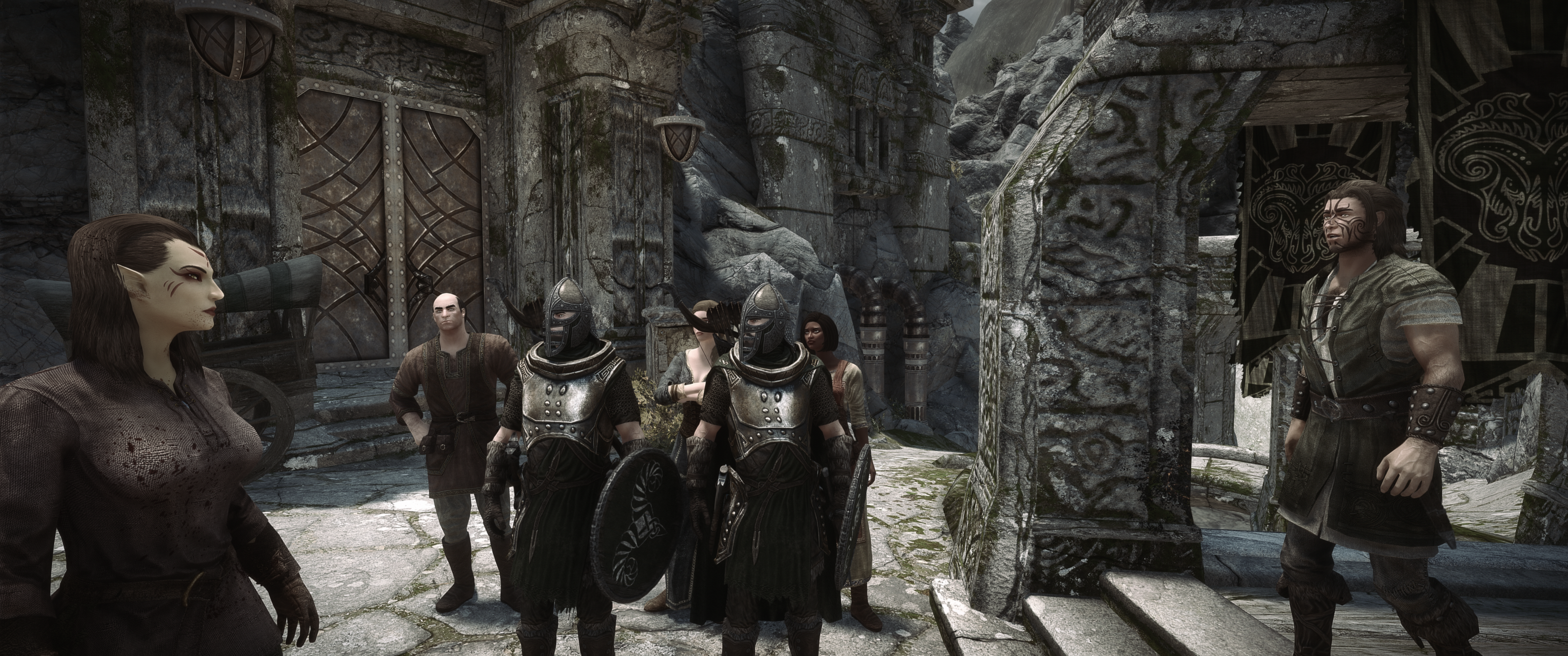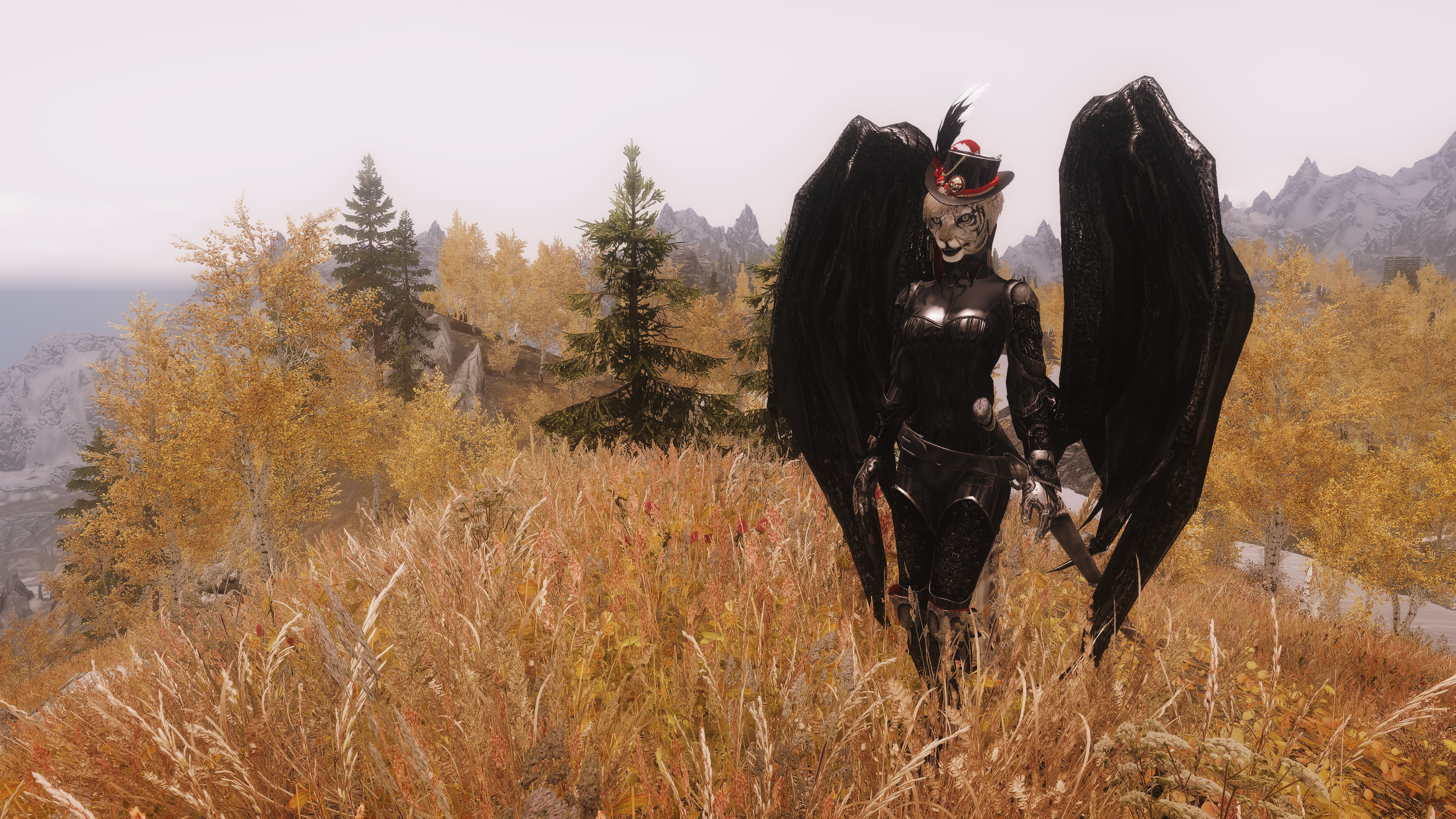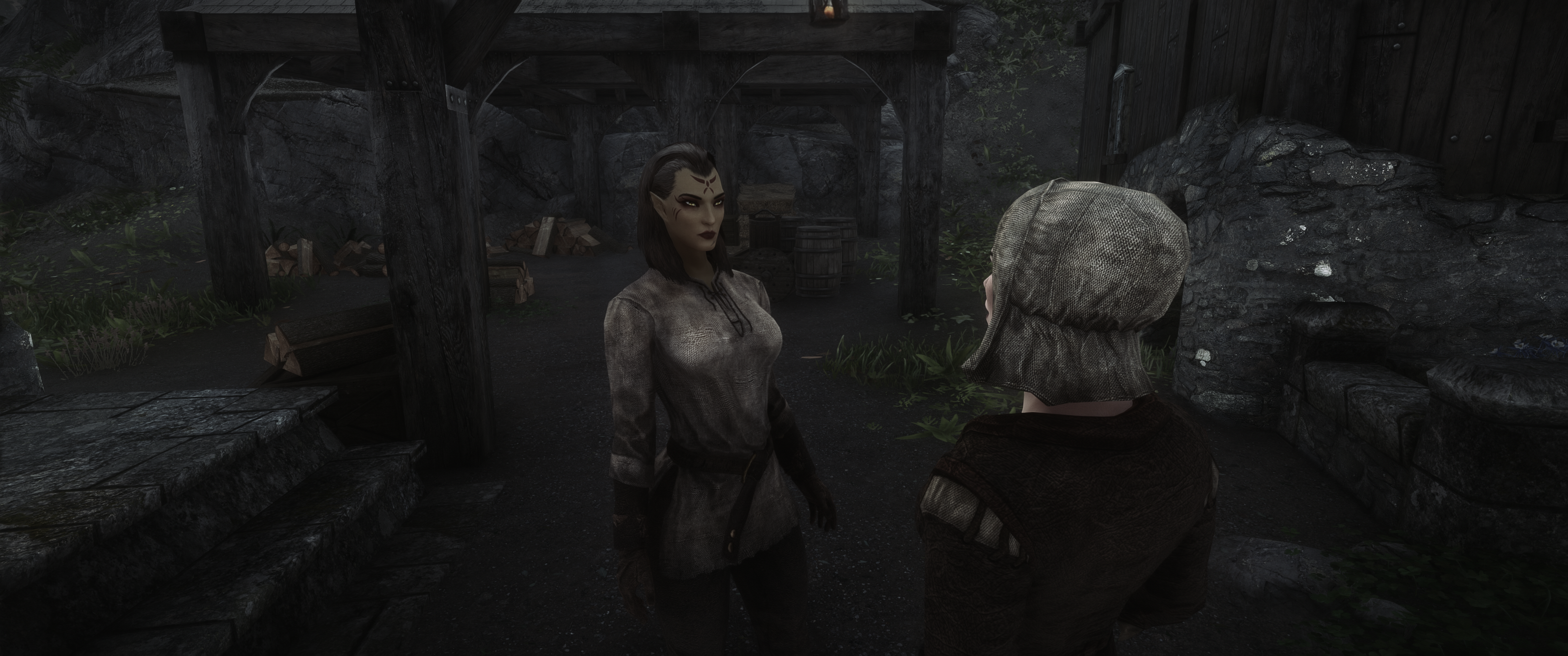 Зима пришла, самое время вернуться в Скайрим. Слегка причесал свою сборочку, побегал-потестил-поаутировал за рыжуху-имперку, но решил всё-таки начать с нуля за нового персонажа. Во время тестового забега вспомнил давнишнюю просьбу анона из этого (или даже предыдущего?) треда -- тот хотел увидеть Юнию в красивом платье. Она не из тех, кто любит наряжаться, но кое-что +- подходящее перерыв кучу файлопомоек я всё же нашёл. Надеюсь, анон, ты ещё тут и увидишь это, хотя я конечно припозднился с твоим реквестом на ~год, но всё же.