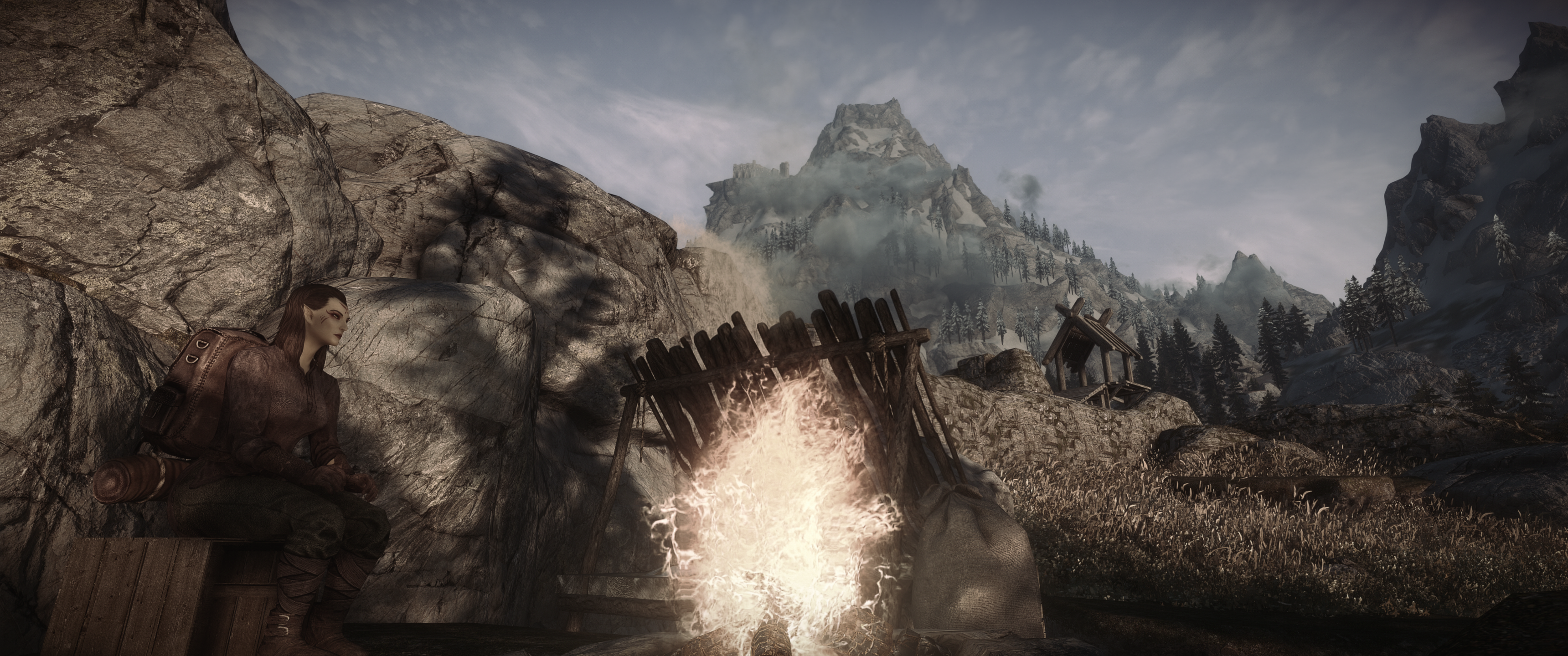 Бампецкий сильнонезависимой бретонкой. Все-таки здорово делать длительные перерывы в этой игре, потом запускаешь ее и ощущение что ты вообще это все впервые видишь. Вкотился в магию разрушения и заодно смотрю новые спеллы колдовства из модика. Брожу по Скайриму, аутирую и делаю скриншотики. Вступил в Коллегию, поделал некоторые квестики, теперь таскаю туда собранные книги. Какое поместье вмещает в себя максимальное количество книжных полок, или они все одинаковые? Коллегия посылает в Мзулфт, но чет боюсь, что мне там сделают если не больно, то как минимум очень неприятно. Пока живу в Солитьюде и брожу по его окрестностям. Очень доставляет природа в этих краях.