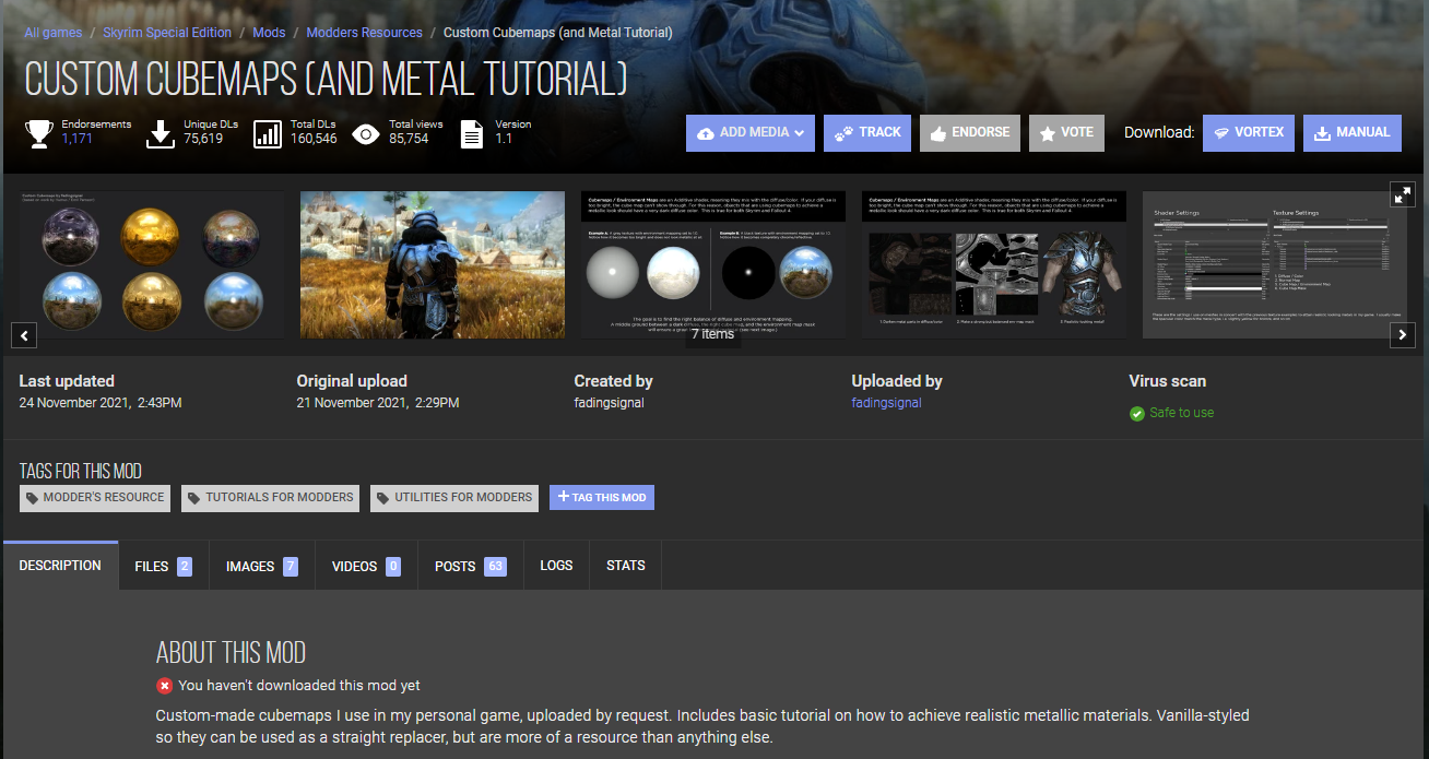 >>1950091 > This mod is an example of how to add dynamic cubemaps to existing materials. It was chosen because it is one of, if not the highest quality armour asset in the game.