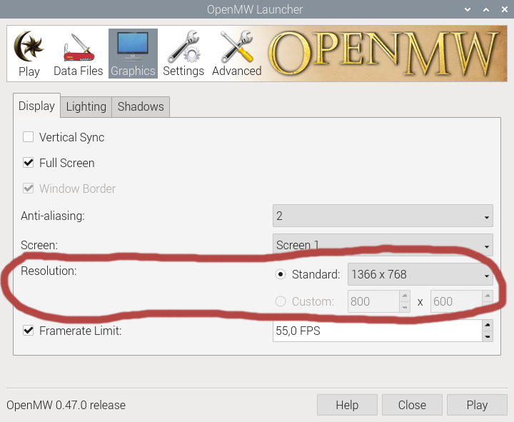 >>1993513 Меняешь разрешение в настройках OpenMW или прямо из игры? Попробуй и там, и там.