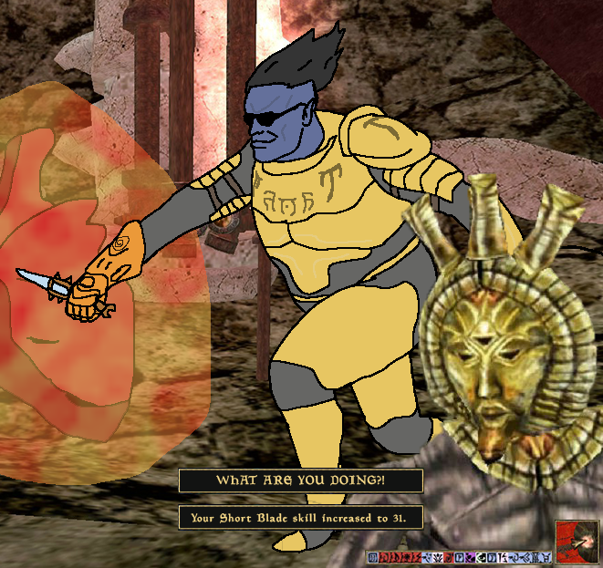 Вы ебанутые? Что вы обсуждаете? В морровинде нет стелса, эта механика нерабочая как и карманные кражи