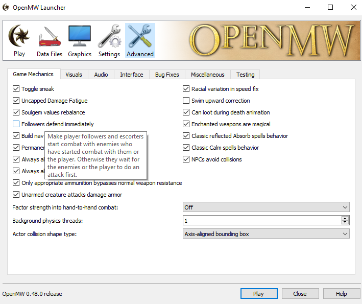>>2008238 Этот мод встроен в OpenMW, просто галку ставишь в ланчере. Если отдельно, то такой мод был еще встроен в Morrowind Code Patch, насколько я помню. Там сборник фиксов и тоже галками выбираешь, чё поставить.
