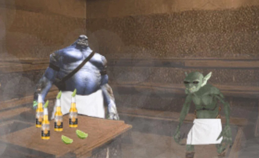 В таверне: , где это тебя так отделали?! - Проклятый Ра`Жид перешёл мне дорогу, вот меня в подворотне поймали, избили и ограбили! Голос с другой стороны стола: - Ра`Жид не виноват, что глупый Посос Орал не понимает намёки!