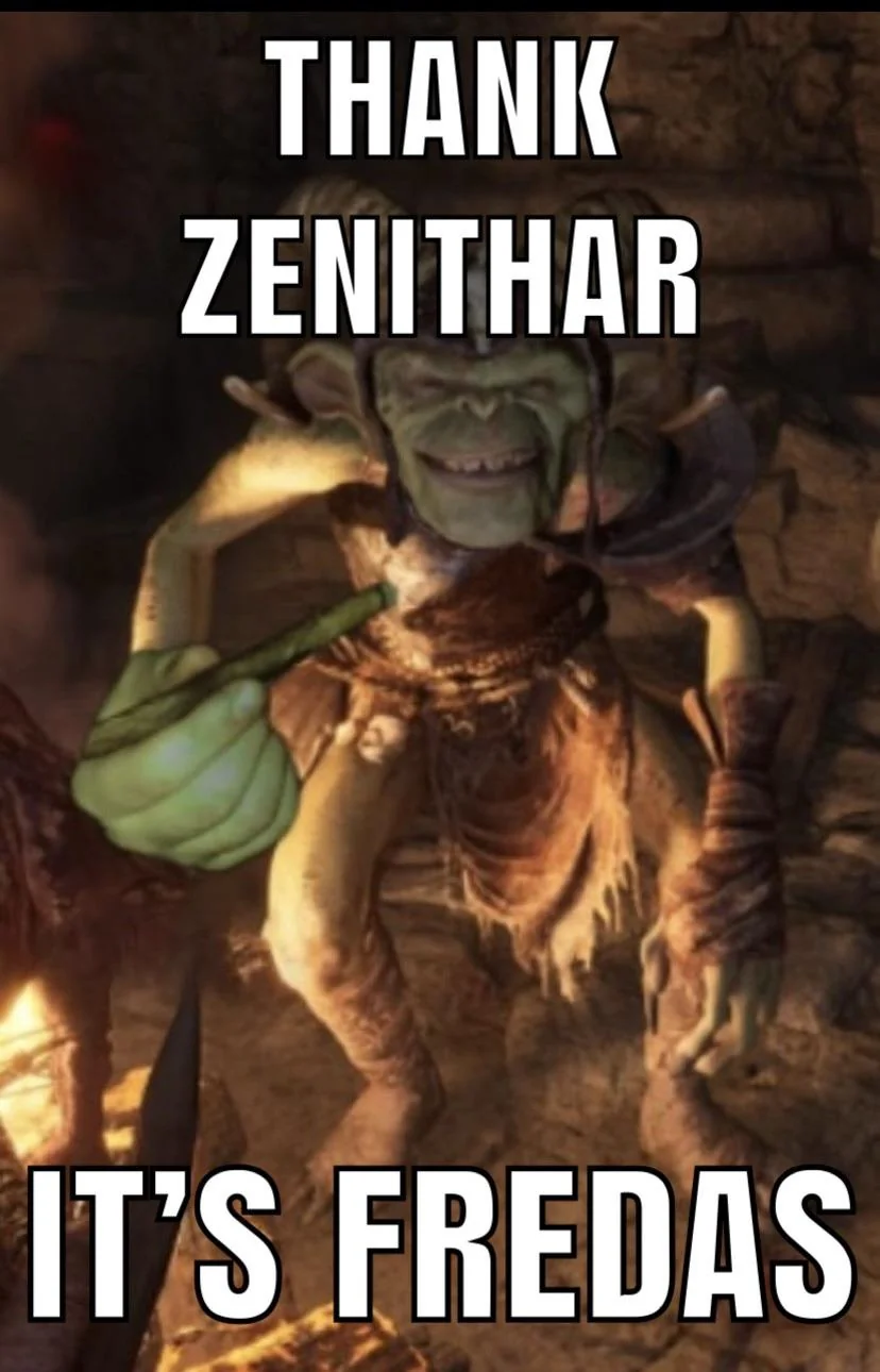 А вот теперь на самом деле Фредас, за что я хочу поблагодарить маму, папу, деда Бафомета, анона Сычева из Барнаула, Тодда Говарда, Шеогората и Зенитара, конечно же.