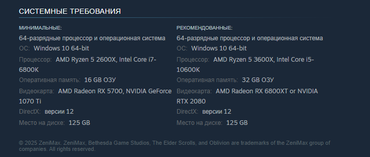 > Минимально для запуска игры потребуется компьютер с видеокартой GTX 1070 Ti, но рекомендуется RTX 2080. Ремастер требует до 32 ГБ оперативной памяти и 125 ГБ на диске. > 32 ГБ оперативной памяти