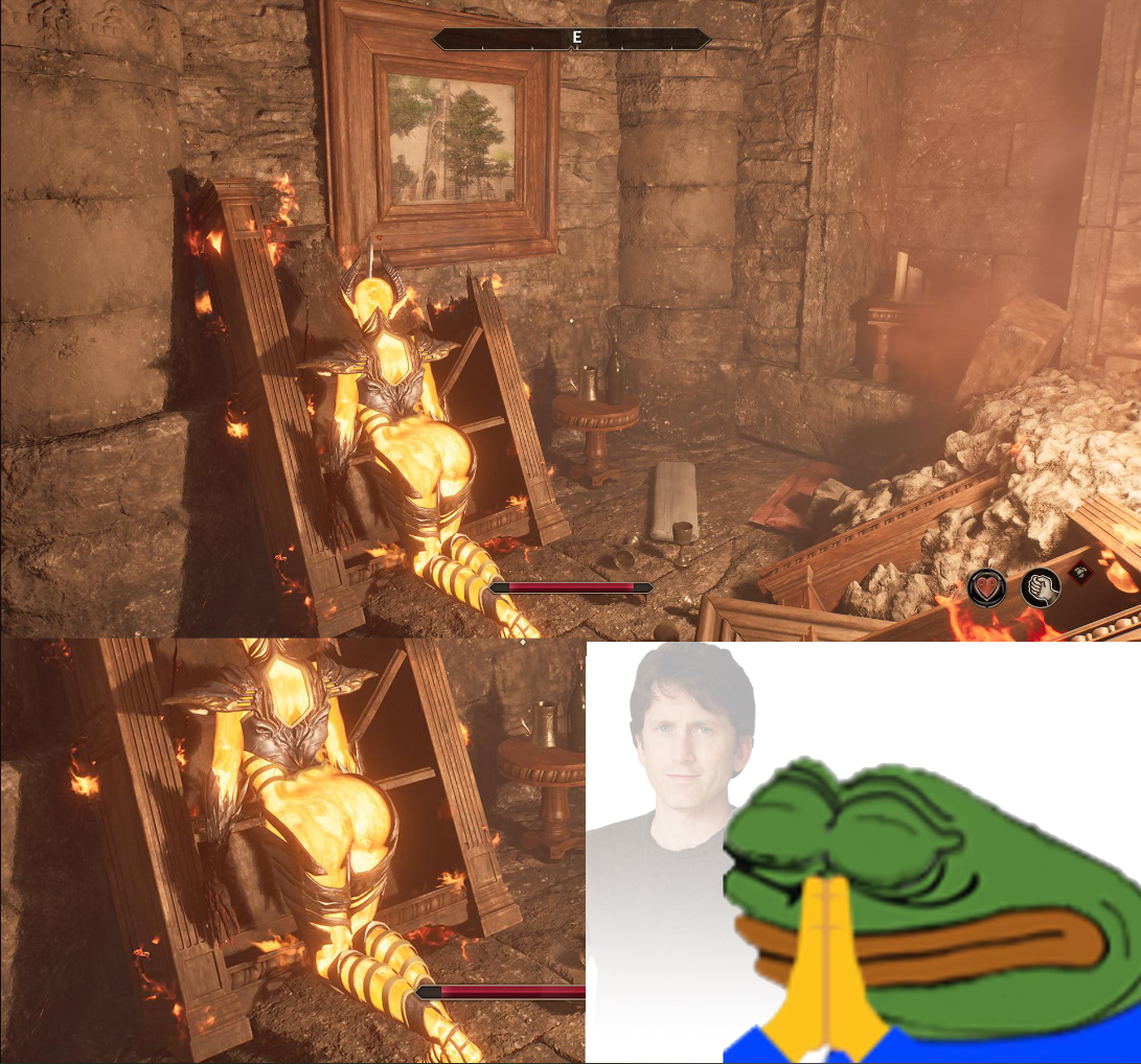 >>2008223 >>морровинд ремастеред Вряд ли когда-нибудь морра увидит ремастер или ремейк, я лично слабо себе представляю как это должно выглядеть, чтобы все осовременить и при этом сохранить дух оригинала с бросанием невидимых кубиков и полотнами текста с гиперссылками. Уберешь последнее - не поймут утки, оставишь - не поймет зумерье. Как ни крути, а сесть на оба стула с моррой не выйдет.