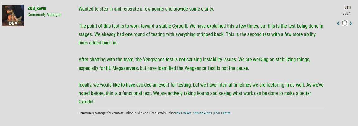 >>2017021 Прямо посреди ивента Зосы устроили техработы на весь день, чтобы заменить обычные ПВП-кампании на новую тестовую кампанию "Месть". В ней нельзя выполнять квесты, там отключены ЧП, не работают сеты, бесконечные банки, и так далее. Экспериментальная кампания, в общем. Чтобы нагнать туда людей, им приходится включать ПВП-шные золотые свершения. Чтобы закрыть эту кампанию и вернуть старые, они устроят ещё одни техработы на полный день ивента.