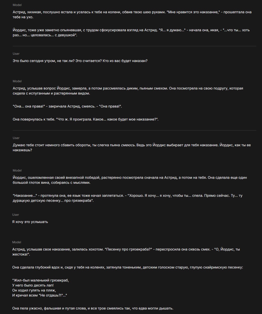 >Попробуй навернуть skyrimnet под игру за суккуба Разве подойдёт под ЛЕ? Да и к тому же, мне кажется, что нейронка не вывезет моей шизы моей фантазии. Ну а так - да, конечно, стоит хотя бы попробовать. Просто я же на ЛЕ.
