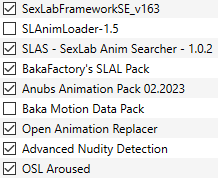 -Еблемоды_separator +Bandit Paradise +TroublesofHeroineSE +Simple Slavery Plus Plus +Billyy's SLAL Animations 9.6 +PsycheAnimation SE +MilkySLAL +HYPER DUMMY THICC - Flame Atronach +Creature Framework +BakaFactory's SLAL Pack +Anub H +Anub C +ZAZ +SLO Aroused NG +SLAL_SE +Simply Knock SE 1.0.3 Release +SLAL NibblesAnims +SL Defeat SSE +Radiant Prostitution +SLSF Fame Comments SE Rus +Sexlab Sexual Fame Framwork SE Rus +MoreNastyCrittersSE +Animal SOS SE +Schlongs of Skyrim SE +SexLabFrameworkSE_v +SexLabArousedSSELoose +SexLab Utility Plus +SexLab Framework SSE +Sexlab Forbid Faction Remover +SexLab Aroused Creatures SE v
