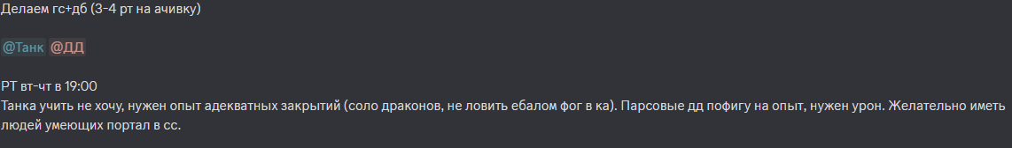 >>2037230 Ты бы вряд ли это захотел если б знал как закрывают трифекты триалов. Здесь твой личный скилл мало решает и если у тебя в статике кто то постоянно лажает например, хил, когда нужно заблочить лазер дракона, то есть шанс просто не закрыть с таким статиком и искать придется новый. Это не говоря о баголагах, пинге и хреновом состоянии серверов