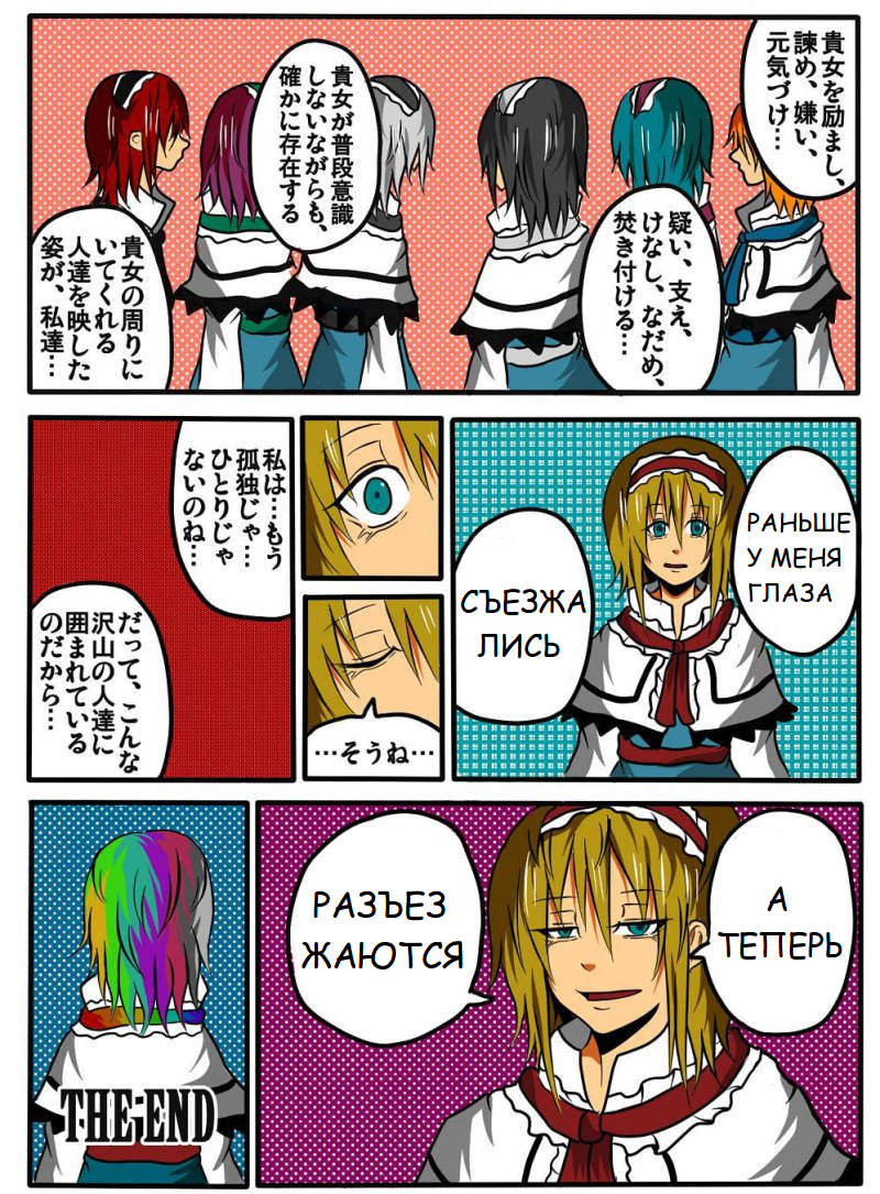 >>14717 Напомнило, как переводчику другую додзю заленивило переводить и он написал "I don't have time to draw all the little boxes, but the gist of it is Tohos being gay"