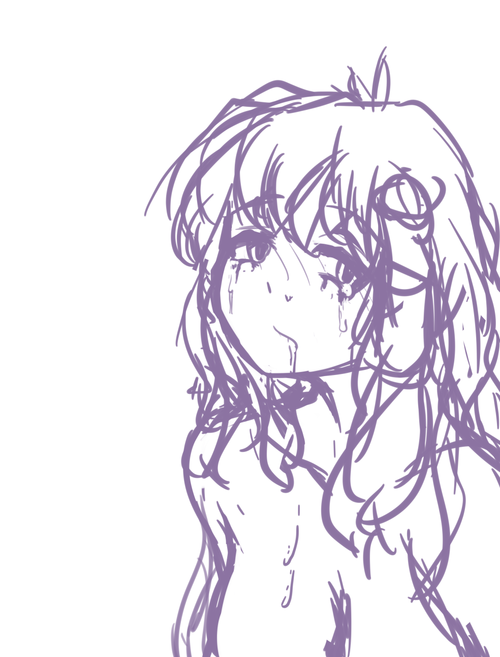 >Не знаю, как сделать волосы поубедительнее. Или и так сойдёт? Не сойдёт. Некоторые пряди коротки, хотя и не должны. веди линии волос до плеч, не заканчивая их. Помни что длинны всех прядей должны быть приблизительно равны между собой. Смысл передан в картинке.