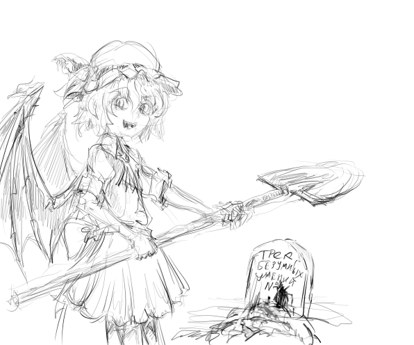 Хз, что делал, хотел попробовать мазками как в паинте, но пытался взять цвета из головы. В ебаном саи даже обрезать нельзя и походу нет истории. Похуй, потом попробую фотожеп опять. Руки хз как рисовать, задолбало короче. Так или иначе под ин флеймс ее рисовать невозвожно но можно фигачить под годсмак https://www.youtube.com/watch?v=gnWz8qorRm0 >>70759 Та хуйня это рисование, тут идея важна. Каракули с идеей > любые скиллы рисования. А планшет, это всегда заебись. Аутист, который несколько лет безуспешно пытался в мышку может это подтвердить. И не могу я в рисование, а смогу, когда лайн будет на уровне Хататера, так-то! >>70760 Это может быть долго и опасно для здоровья, но попробовать можно. Если осторожно. >>70769 >опиши процесс плес Так. Все это в Саи. Вначале был набросок, пик2 a, потом пошел обмаз Brush'ем на слое ниже, b. Потом осознал что это убогое мыло, Brush сильно смазывет, захотел как в пэинте, запилил слой сверхуй и спомощью Ballpoint Pen'а зафигачил детальки, c. Если нужно было что-то исправлять, создавал слой, перемазывал, потом смотрел, подходит или нет. Слушал In Flames, все песни, похуй какого качества. Использовал стандартную кастрированную палитру цветов из паинта. Постоянно сверялся с оригинальным ЗУНоартом. Ходил курить и срать. Вроде все. С Саторей решил фигачить только Ballpoint'том в полтора слоя. Вместо наброска был корявый силует. Потом всё вышло из-под контроля и заебало. Короче, все это неправильно, пойду выпилюсь из инета на недели джве, а то irl жопа подкрадывается.