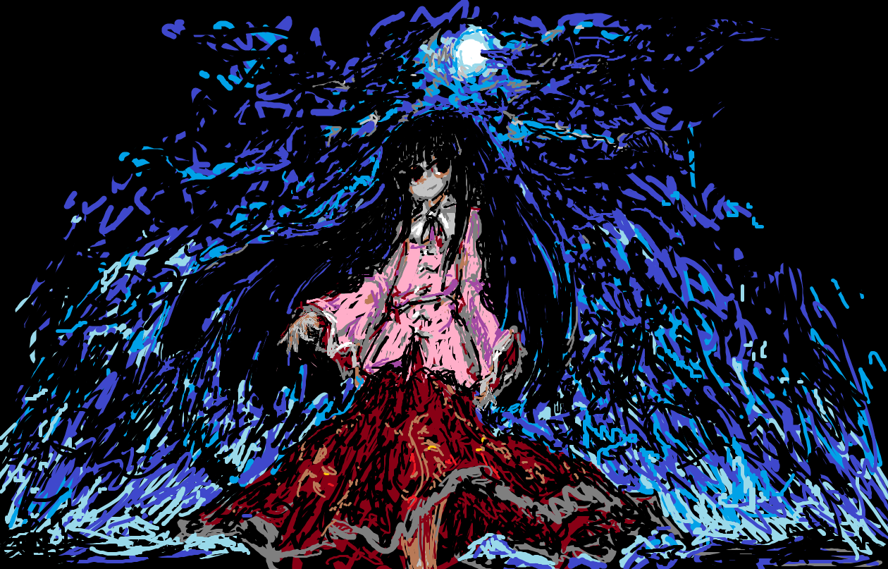 Напоследок упомяну несколько интересных ффффаааааактов: на первой версии рисунка есть Моко, которая, как вы могли заметить, исчезла из версии финальной. Скажу кратко. Я намудрил с ней до такой степени, что ей просто не нашлось места в кадре, она выглядела лишней. Ну а финальную версию я рисовал с первой пикчи. В общей сложности на создание финалки, по приблизительной оценке ушло чуть менее четырёх часов чистого времени, при том что рисованием кагуи я занимался более суток.