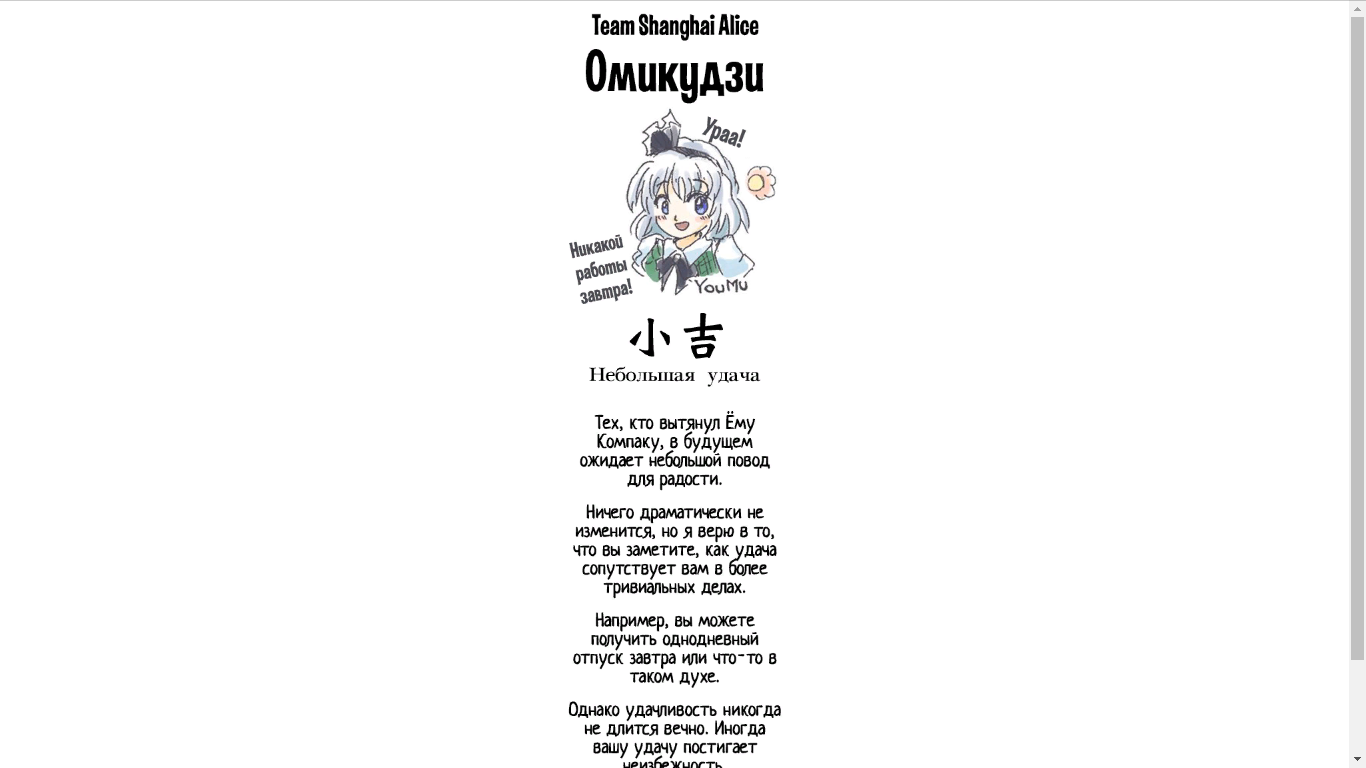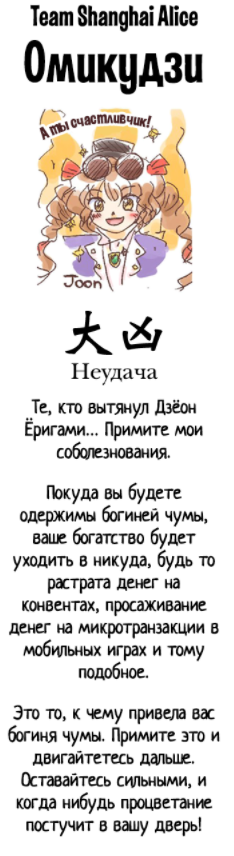 >>72778 Да я вообще случайно по ссылке перешёл, тем более, что все эти омикуджи нарисованы во внешнем мире. И да, щас бы в 2к18-м сомневаться в том, что Генсеко действительно существует. >>72779 Не-а. Во-первых, она не богиня, чтобы ей молиться, а во-вторых, вдруг и вправду снизойдёт ко мне в сычевальню? Что я буду с ней делать в своём ебучем зажопинске? Лучше бы как-нибудь туда перебраться.