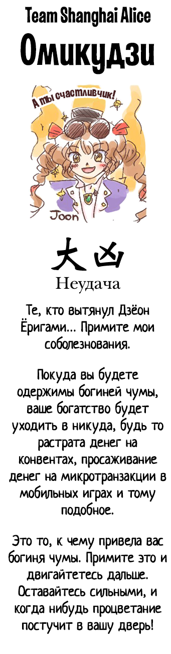 Вот чё нарыл с предидущих Тохо-сборищ: 1 пикча - какая у Маленькой Дьяволицы ляжка. Мясистая. 2 и 3 пикчи - Это называется "Кавайная Итася". Состоит из двух слов: Итай и машина. Увидеть бы это чудо на Невском проспекте и реакцию ментов. Да уж. 4 пикча - Это чувак из Тохо-видюшек с мешком и иероглифом. Видимо, он олицетворяет анонимуса в Генсокё.