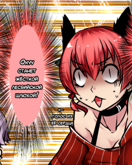 >>96412 а я не добиваюсь точности. точный перевод это ёбаный рак, подаривший нам "my hips are moving on their own!",- у япошек ебанутый порнографический вокабуляр. я сознательно хуячу отсебятину, в рамках смысла того что там было написано на японском. литературный перевод называется. вот например тут >>96397 сатори говорит "от меня пахнет? но я быстро помылась холодной водой". какой нахуй холодной водой? что ты несёшь? вы представляете вообще такой диалог в публичном доме? поэтому я захуячил похожую по смыслу "ну я только сперму по быстрому из волос вымыла", которая более развратная, и подходит под аутичный нончалант характер этой саторьки.