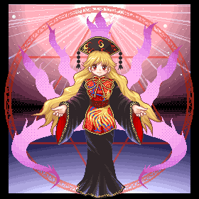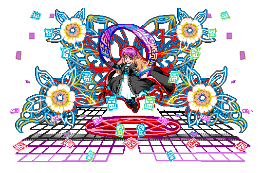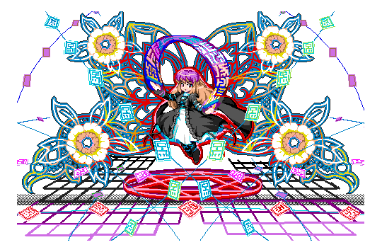 >>91103 >цветочки эти, пожирающие место впустую. Тупо смотрите, у нас арт здоровый. И всё. Тащемта это не просто фон, а последняя спеллкарта Бьякурен, как и на том арте с Ююко. Жалко от остальной её части отказались, было бы ещё красивее.