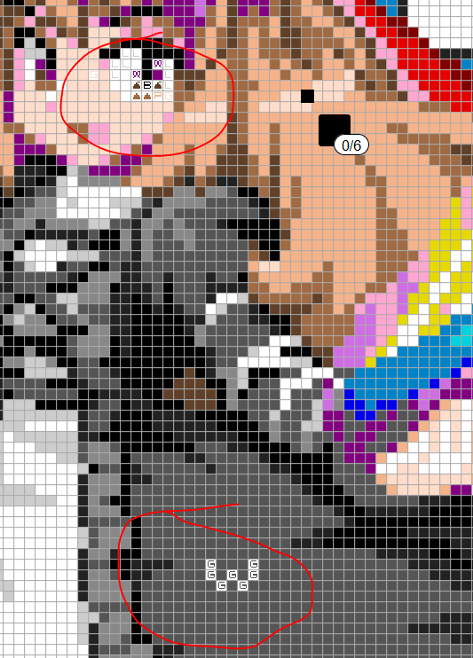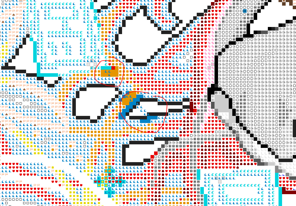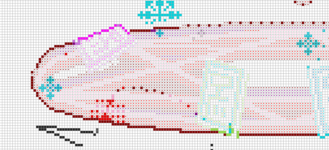 Когда-нибудь я научусь толком подписывать то, что запостил. На всякий случай: тут >>92449 первый пик - исходный кадр из гифки, второй - результат автоконвертации фиддлом. Последние два - после ручного редактирования и отличаются только заливкой гапа. И раз уж сеточка всех устраивает, оставлю ее. Контуры поправил, вернул еще теней, где мог, бантики прикрутил. Распилил на 2 части для возможности маневра.