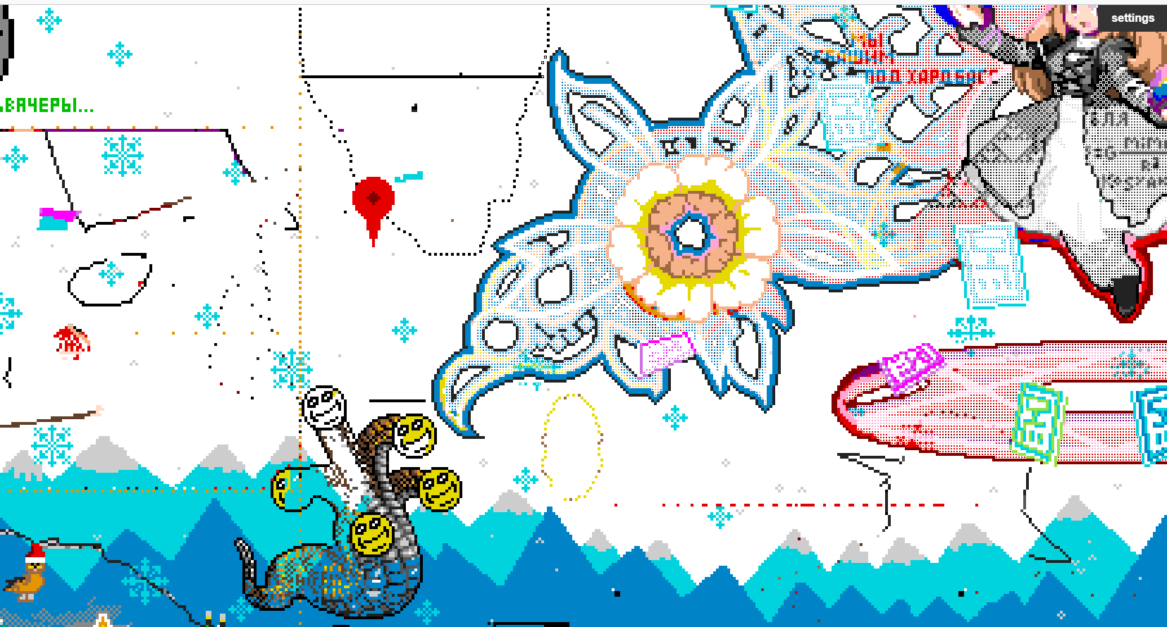 Продолжаем попиксельно рисовать тоходевочек на общем холсте.