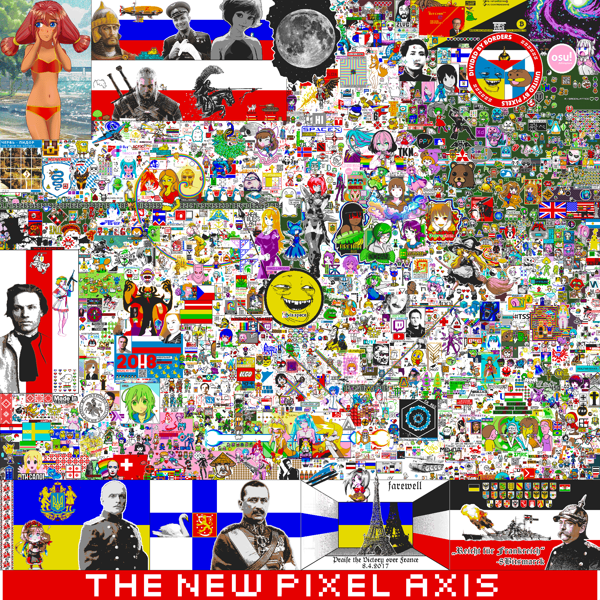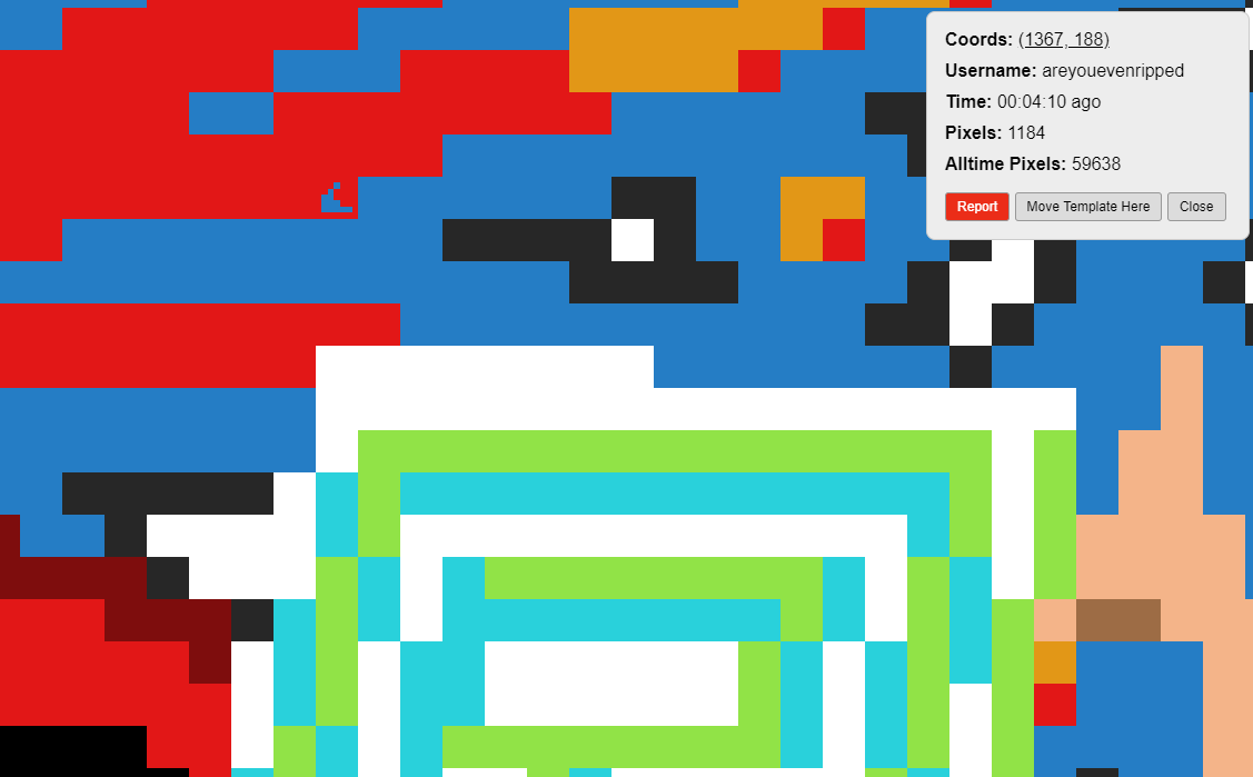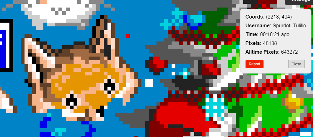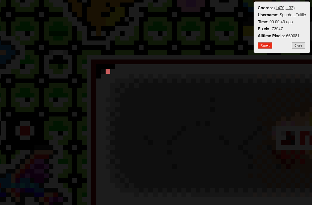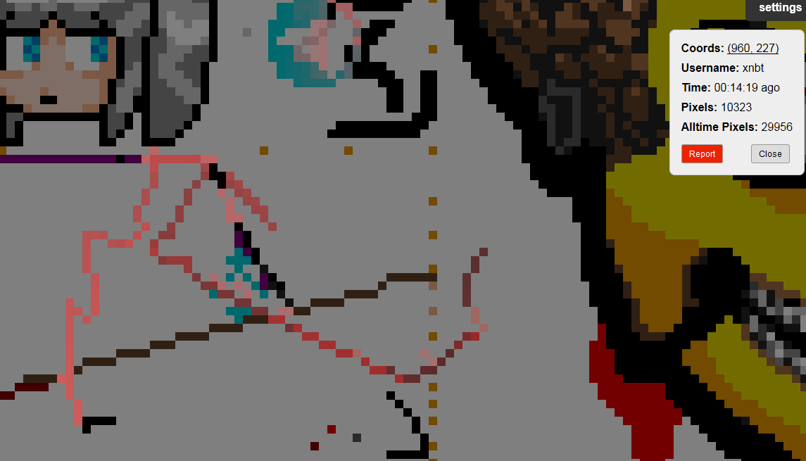 О мультиакках. Админы обладают инструментарием, который позволяет легко искать и находить мультиаккаунты. Все обнаруженнные немедленно банятся, а все их пикселы отменяются. Игра хранит историю всех пикселей. Если не можете обеспечить разные IP адреса, сидите с одного аккаунта. Иначе от отката пострадают все, и разбираться вам придется самим с админами.